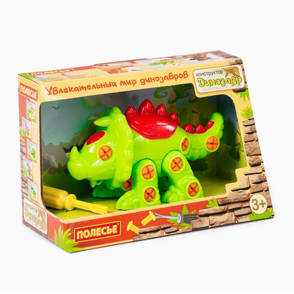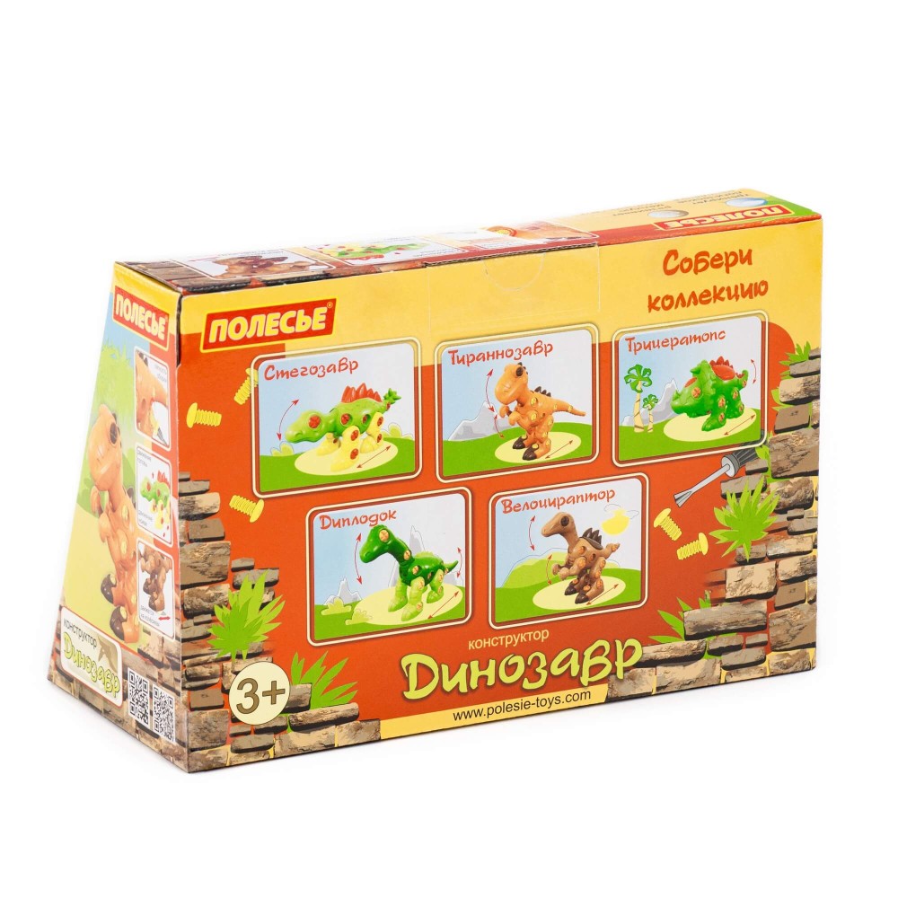Фабрика «Полесье» предлагает детям стать маленькими палеонтологами и представляет серию конструкторов в виде динозавров. Мальчики и девочки познакомятся с "Тираннозавром", "Стегозавром", "Трицератопсом", "Диплодоком", "Велоцираптором". Игрушки выполнены в ярких цветах, из качественного материала, имеет округлую форму. Все элементы представлены в виде конструктора, который соединяется с помощью пластмассовых шурупов. В набор включена крестообразная отвёртка. Этот инструмент сделает игру интереснее и позволит разбирать\ собирать динозавров. Игра с таким конструктором знакомит ребёнка с древним миром животных. А также развивает фантазию, учит моделированию и конструированию.
