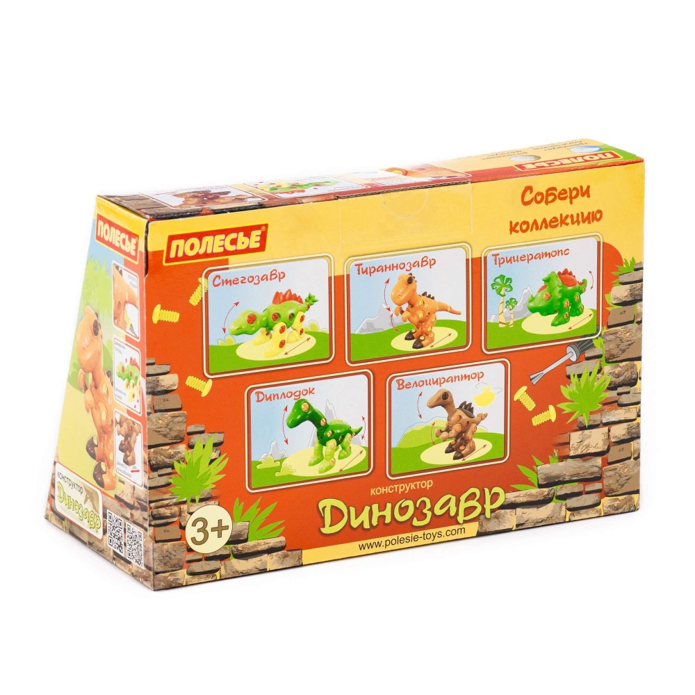 Фабрика «Полесье» предлагает детям стать маленькими палеонтологами и представляет серию конструкторов в виде динозавров. Мальчики и девочки познакомятся с "Тираннозавром", "Стегозавром", "Трицератопсом", "Диплодоком", "Велоцираптором". Игрушка выполнена в ярких цветах, из качественного материала, имеет округлую форму. Все элементы представлены в виде конструктора, который соединяется с помощью пластмассовых шурупов. В набор включена крестообразная отвёртка. Этот инструмент сделает игру интереснее и позволит разбирать\ собирать динозавров. Игра с таким конструктором знакомит ребёнка с древним миром животных. А также развивает фантазию, учит моделированию и конструированию.
