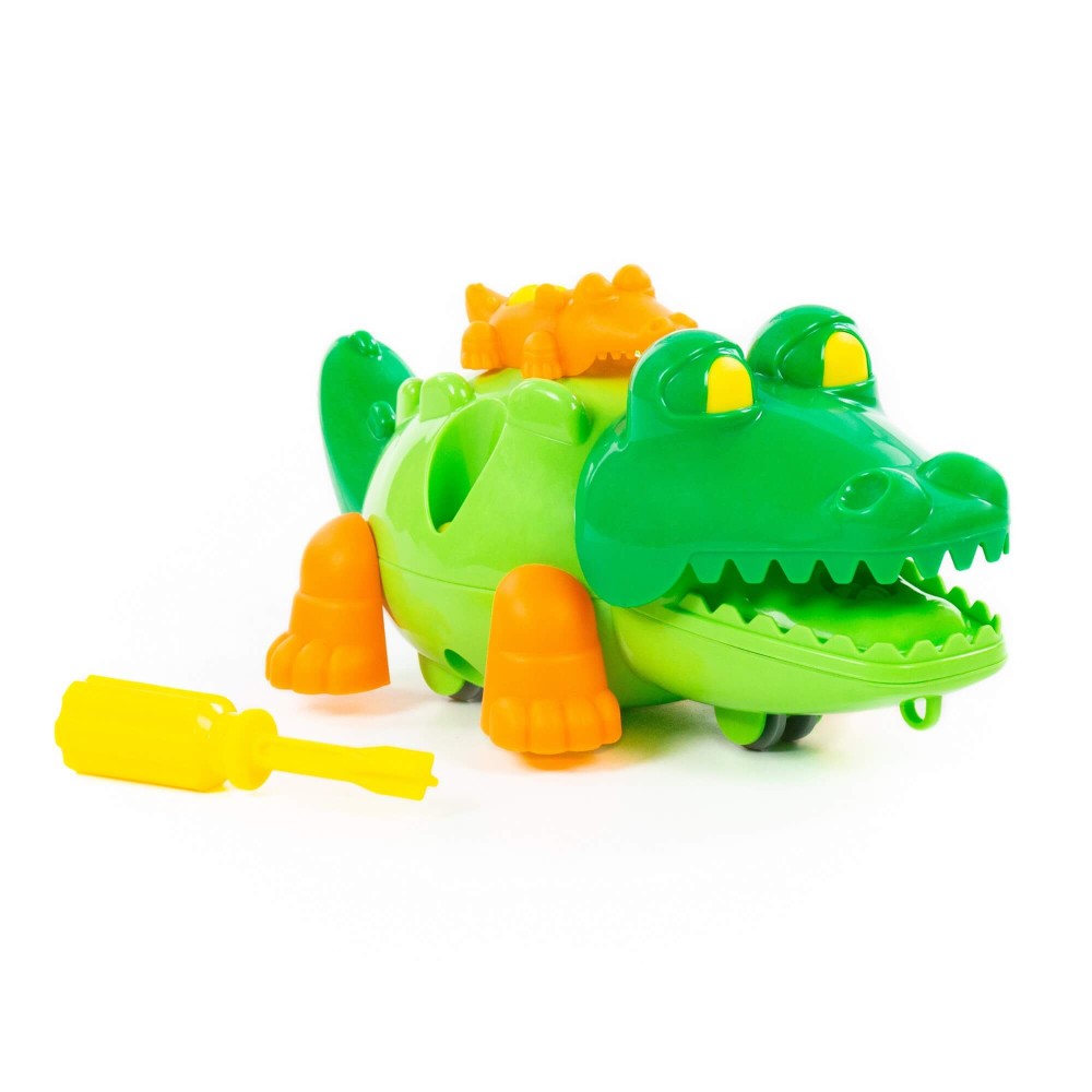 С помощью конструктора «Крокодил» ребёнок не просто знакомится с миром животных, а может многократно собирать и разбирать игрушку по деталям. Для этого в наборе предусмотрена специальная отвёртка. Игрушка на колёсах, поэтому ей можно играть как машинкой. Такой конструктор прекрасно подходит для воспитания малыша, так как ребёнок изучает цвета и формы; у него развиваются усидчивость, логическое мышление, мелкая моторика рук и координация движений.