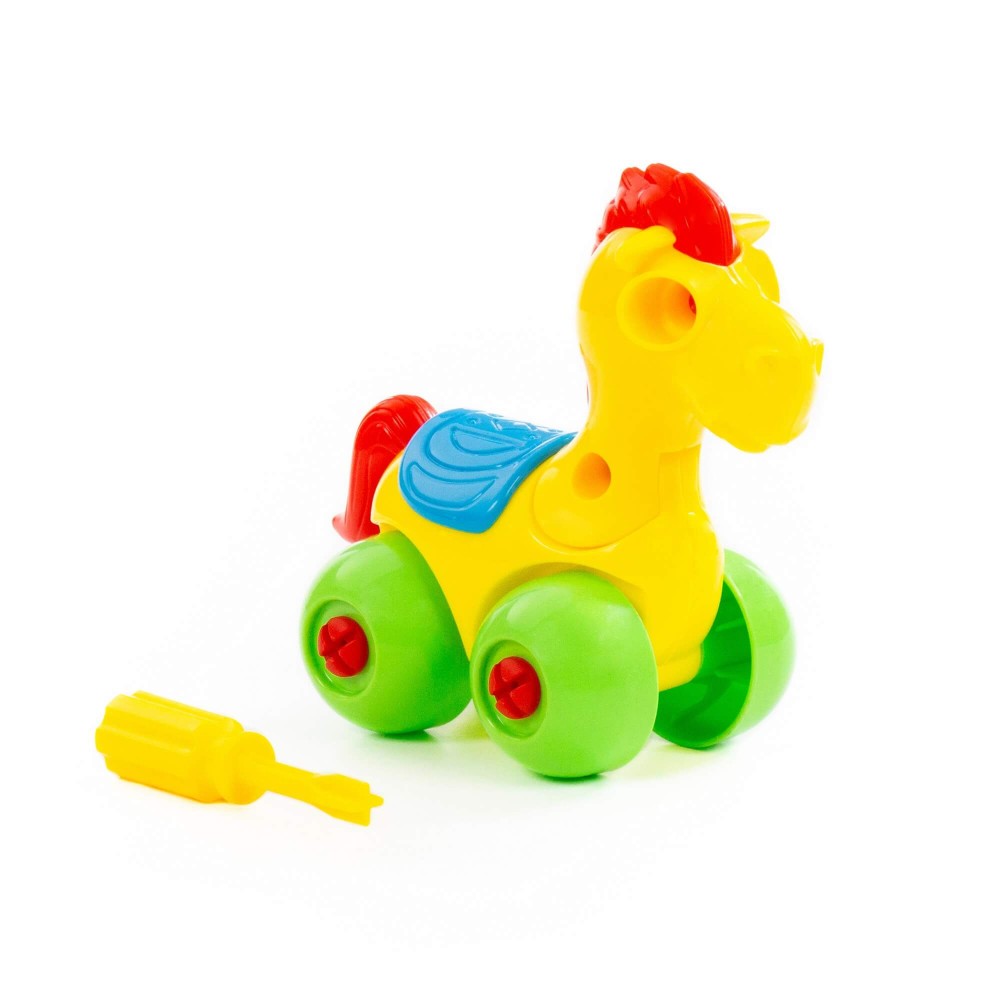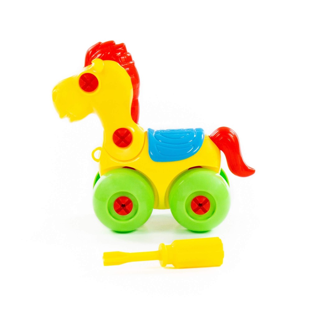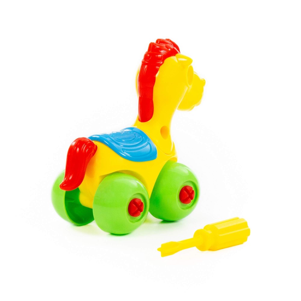 С помощью конструктора «Лошадка» ребёнок не просто знакомится с миром животных, а может многократно собирать и разбирать игрушку по элементам. Для этого в наборе предусмотрена специальная отвёртка. Игрушка на колёсах, поэтому ей можно играть как машинкой. Такой конструктор прекрасно подходит для воспитания малыша. С ним ребёнок изучает цвета и формы, у него развиваются усидчивость, логическое мышление, мелкая моторика рук и координация движений.