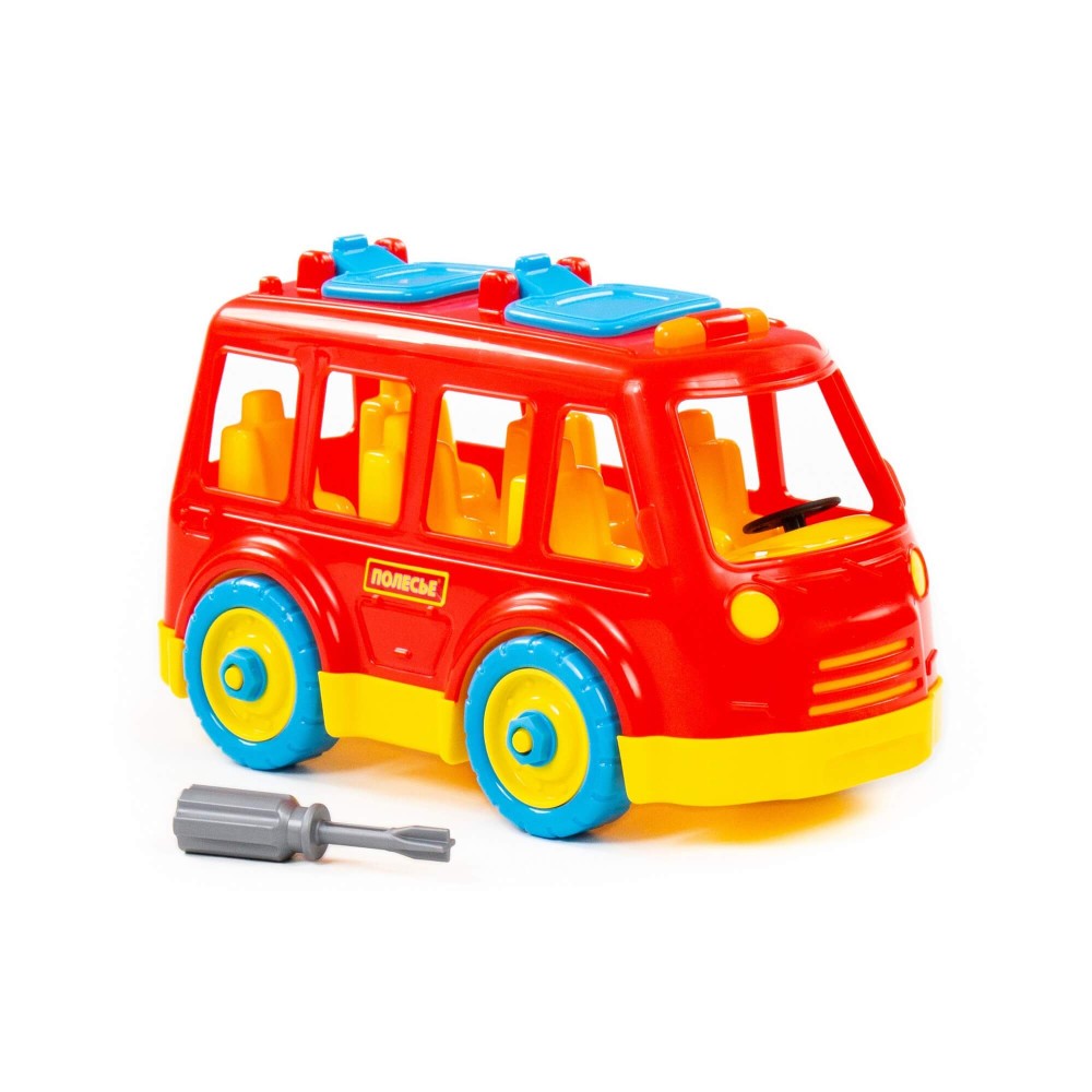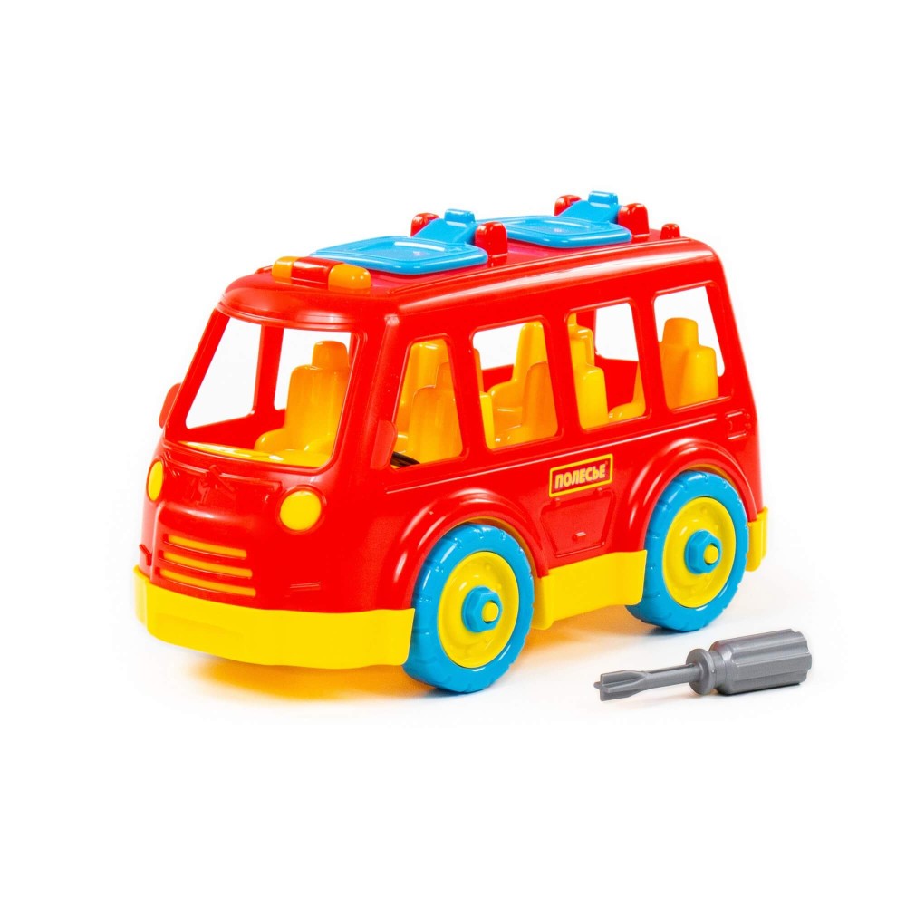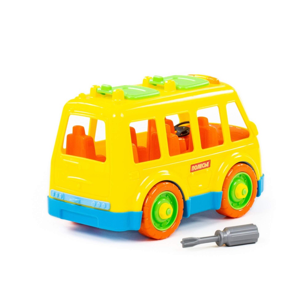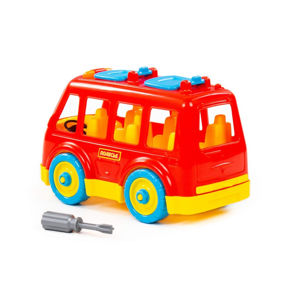 Для самых любопытных малышей, которые хотят поближе познакомиться с разными видами транспорта, фабрика «Полесье» представляет конструктор-транспорт "Автобус". Игрушка выполнена в ярких цветах, из качественного материала, имеет округлую форму. Все элементы автобуса представлены в виде конструктора, который соединяется с помощью пластмассовых шурупов. В наборе также идёт крестообразная отвёртка, которая разнообразит игру, сделает её еще интереснее, позволяя без труда разбирать и собирать автобус. Игра с таким конструктором знакомит ребёнка с первыми навыками моделирования и конструирования, а также развивает фантазию.