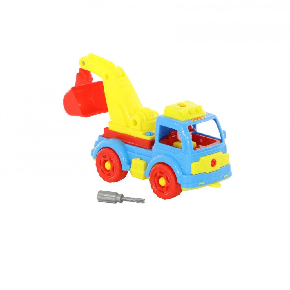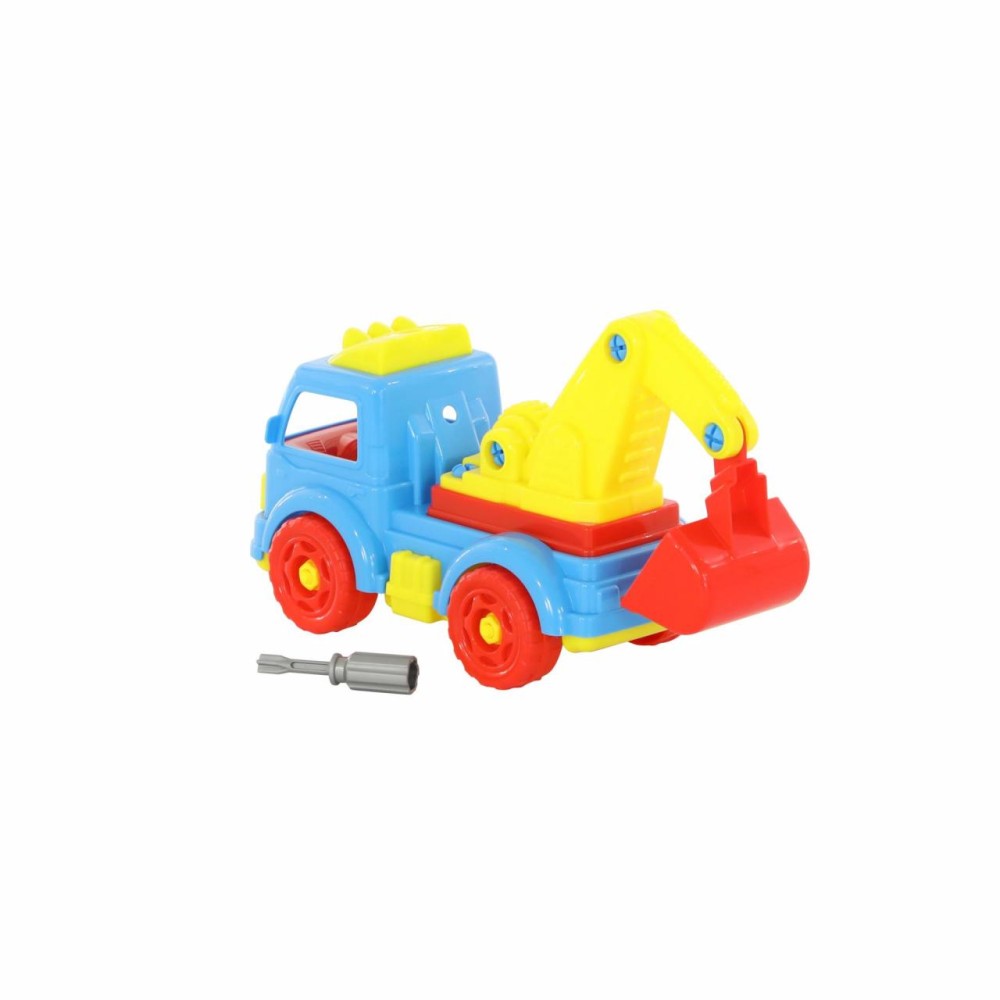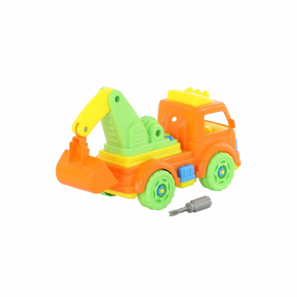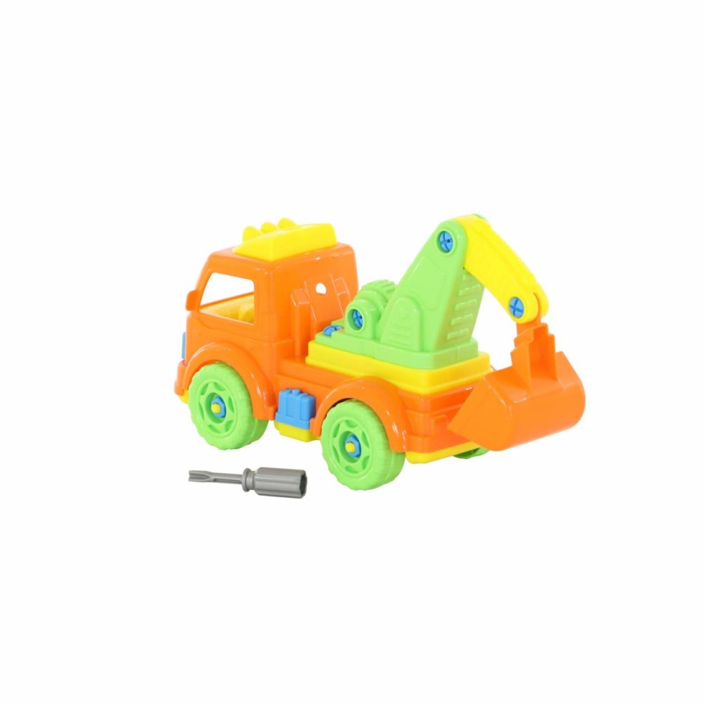 Для самых любопытных малышей, которые хотят поближе познакомиться с разными видами транспорта, фабрика «Полесье» представляет конструктор-транспорт "Автомобиль-экскаватор". Игрушка выполнена в ярких цветах, из качественного материала, имеет округлую форму. Все элементы экскаватора представлены в виде конструктора, который соединяется с помощью пластмассовых шурупов. В наборе также идёт крестообразная отвёртка, которая разнообразит игру, сделает её еще интереснее, позволяя без труда разбирать и собирать экскаватор. Игра с таким конструктором знакомит ребёнка с первыми навыками моделирования и конструирования, а также развивает фантазию.