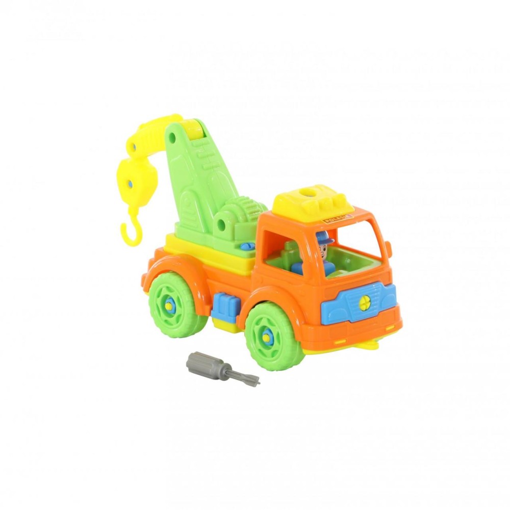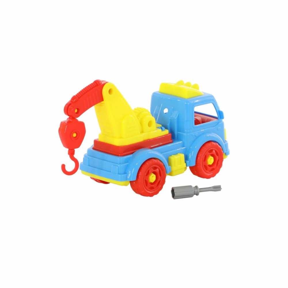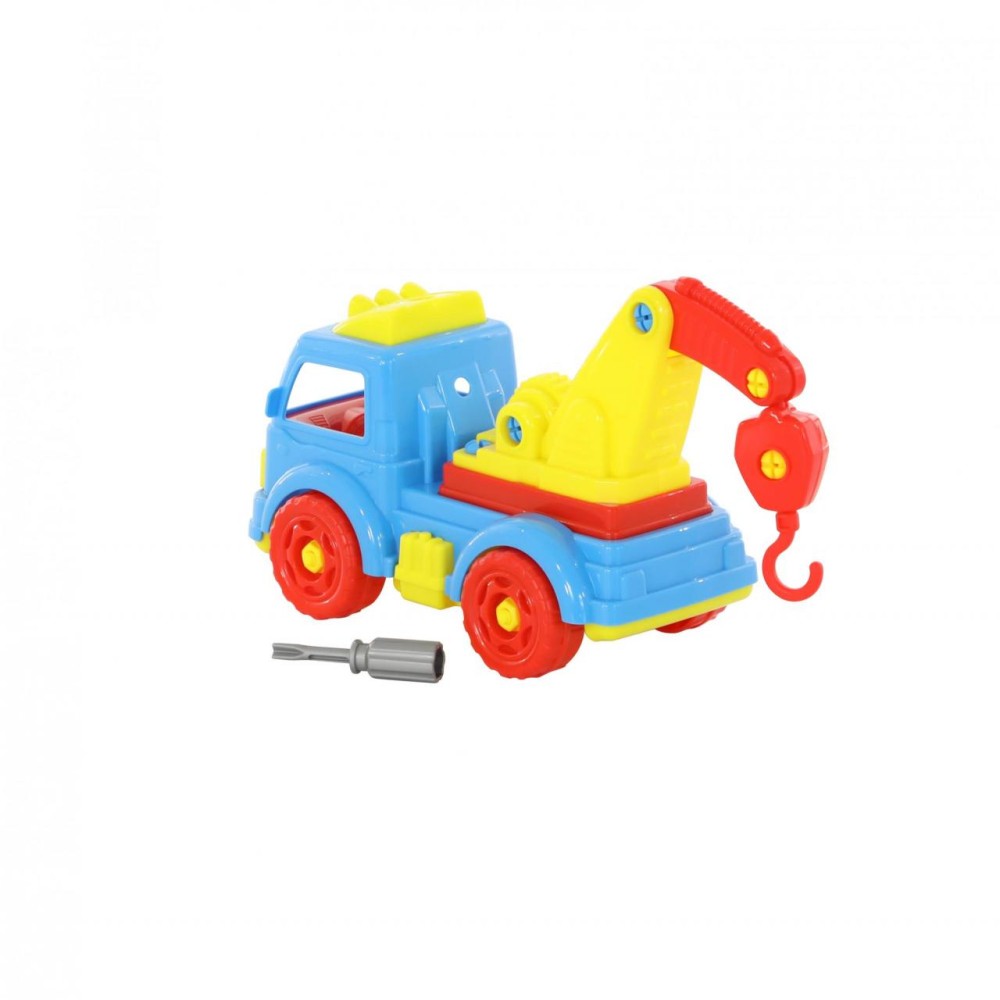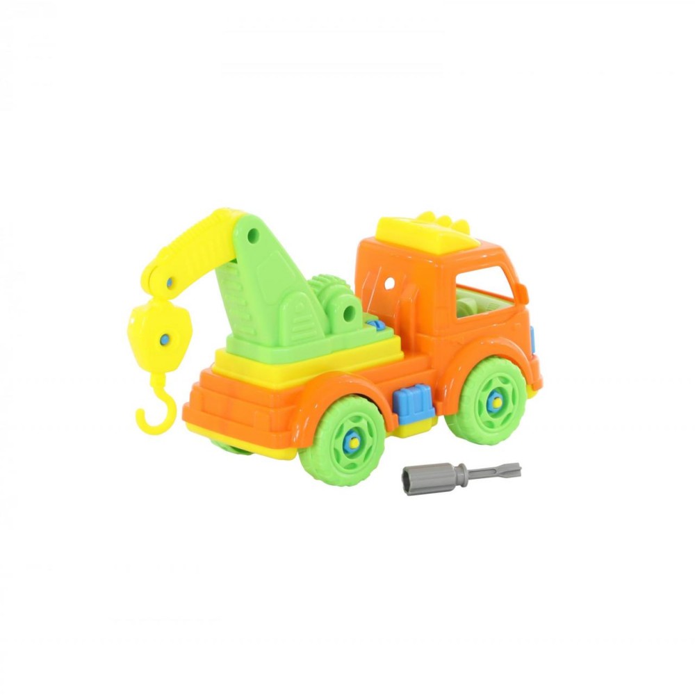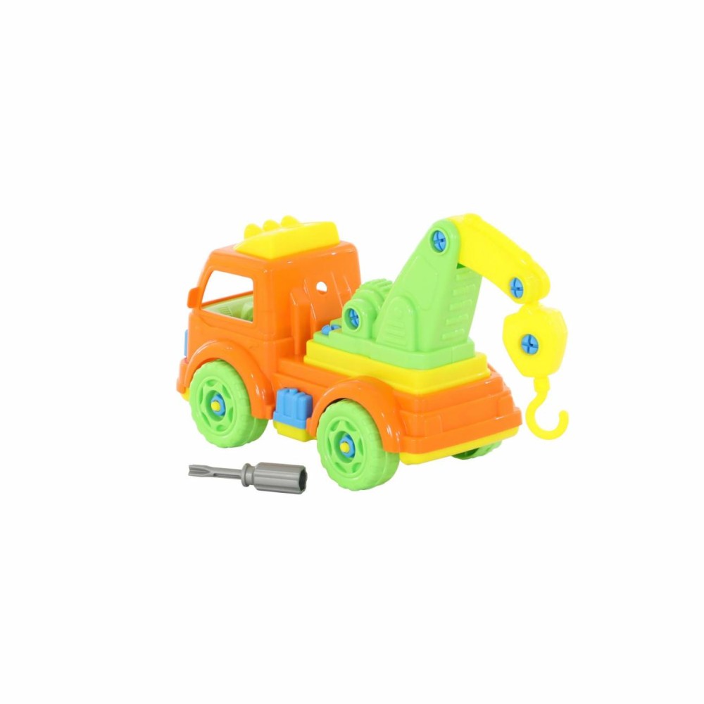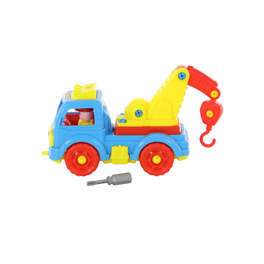 Для самых любопытных малышей, которые хотят поближе познакомиться с разными видами транспорта фабрика «Полесье» представляет — конструктор-транспорт «Автомобиль-эвакуатор». Игрушка выполнена в ярких цветах, из качественного материала, имеет округлую форму. Все элементы эвакуатора представлены в виде конструктора, который соединяется с помощью пластмассовых шурупов. В наборе также идёт крестообразная отвёртка, которая разнообразит игру, сделает её еще интереснее, позволяя без труда разбирать и собирать автомобиль. Игра с таким конструктором знакомит ребёнка с первыми навыками моделирования и конструирования, а также развивает фантазию.