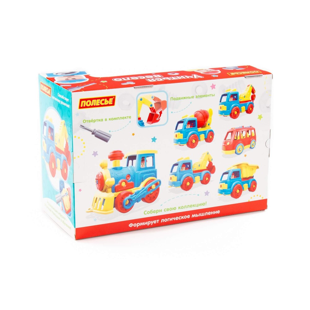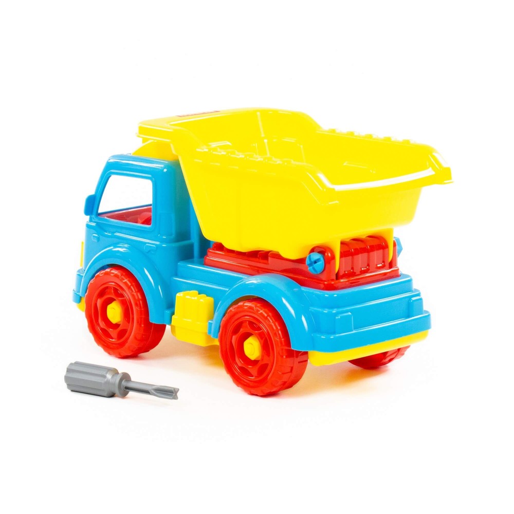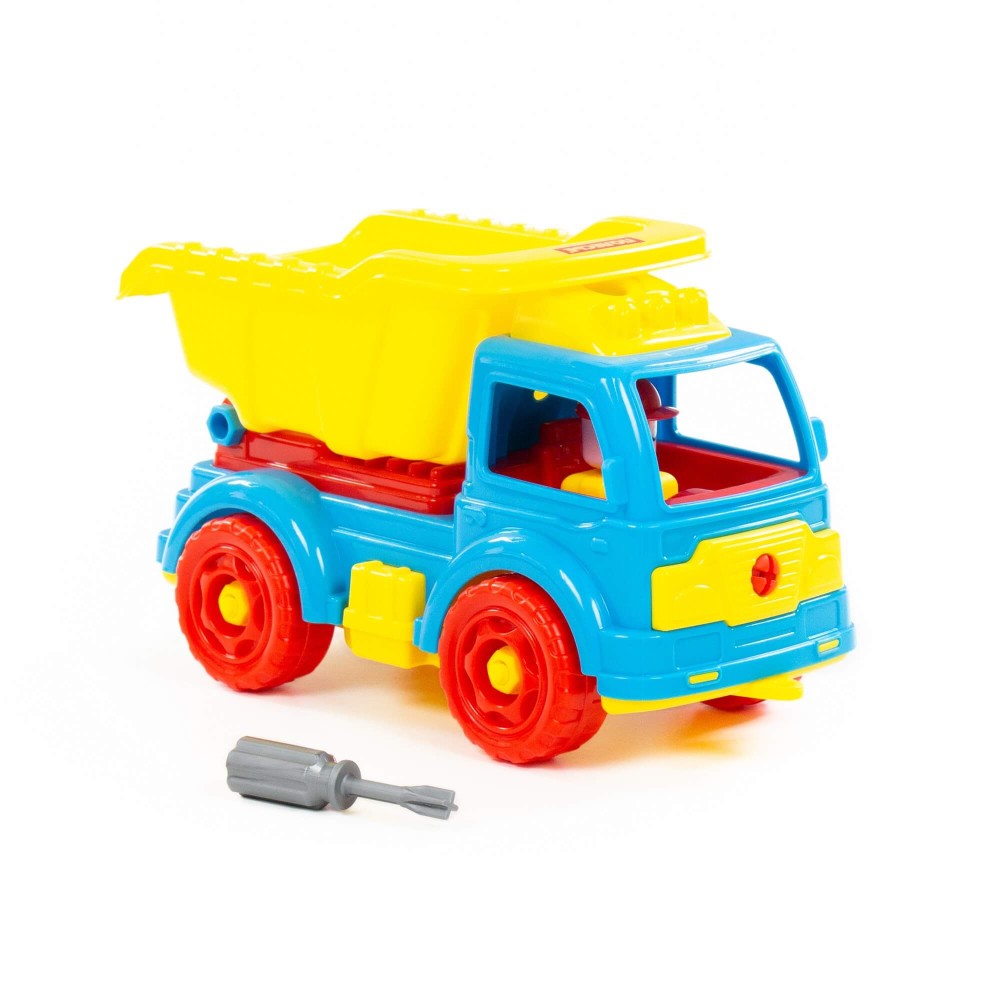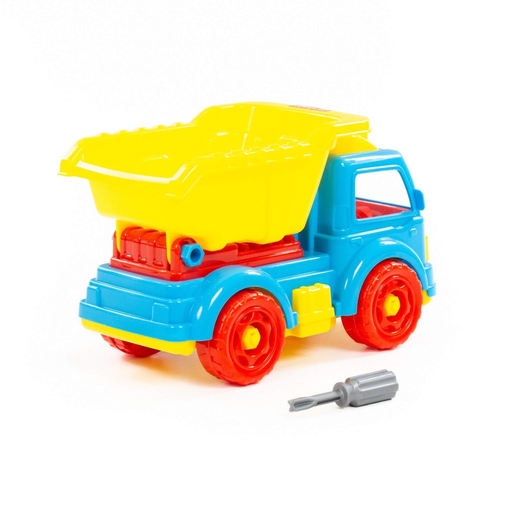 Для самых любопытных малышей, которые хотят поближе познакомиться с разными видами транспорта фабрика «Полесье» представляет конструктор-транспорт "Автомобиль-самосвал". Игрушка выполнена в ярких цветах, из качественного материала, имеет округлую форму. Все элементы самосвала представлены в виде конструктора, который соединяется с помощью пластмассовых шурупов. В наборе также идёт крестообразная отвёртка, которая разнообразит игру, сделает её ещё интереснее, позволяя без труда разбирать и собирать самосвал. Игра с таким конструктором знакомит ребёнка с первыми навыками моделирования и конструирования, а также развивает фантазию. Упакована игрушка в яркую коробку, которая может выступать в качестве подарочной.