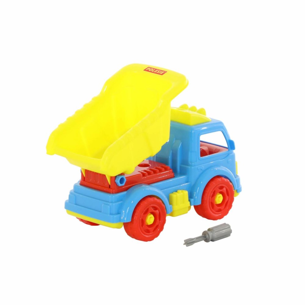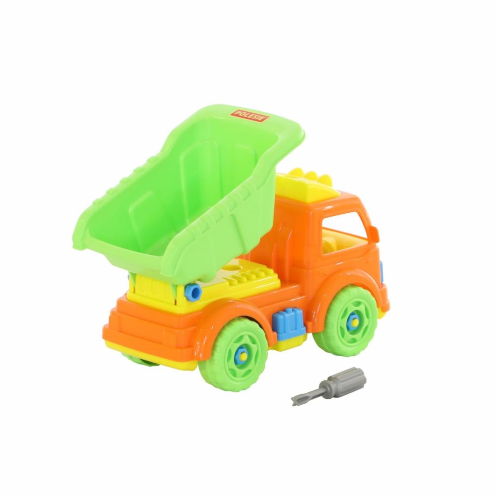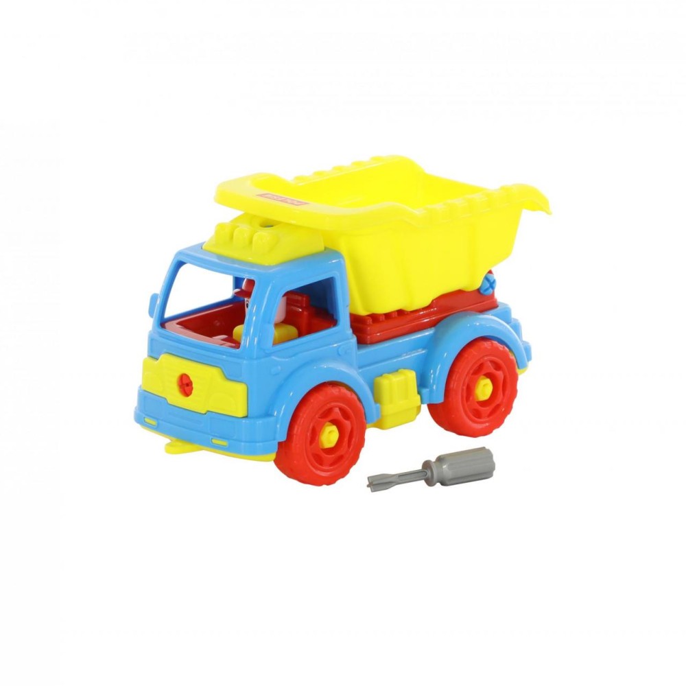 Для самых любопытных малышей, которые хотят поближе познакомиться с разными видами транспорта фабрика «Полесье» представляет конструктор-транспорт "Автомобиль-самосвал". Игрушка выполнена в ярких цветах, из качественного материала, имеет округлую форму. Все элементы самосвала представлены в виде конструктора, который соединяется с помощью пластмассовых шурупов. В наборе также идёт крестообразная отвёртка, которая разнообразит игру, сделает её ещё интереснее, позволяя без труда разбирать и собирать самосвал. Игра с таким конструктором знакомит ребёнка с первыми навыками моделирования и конструирования, а также развивает фантазию.