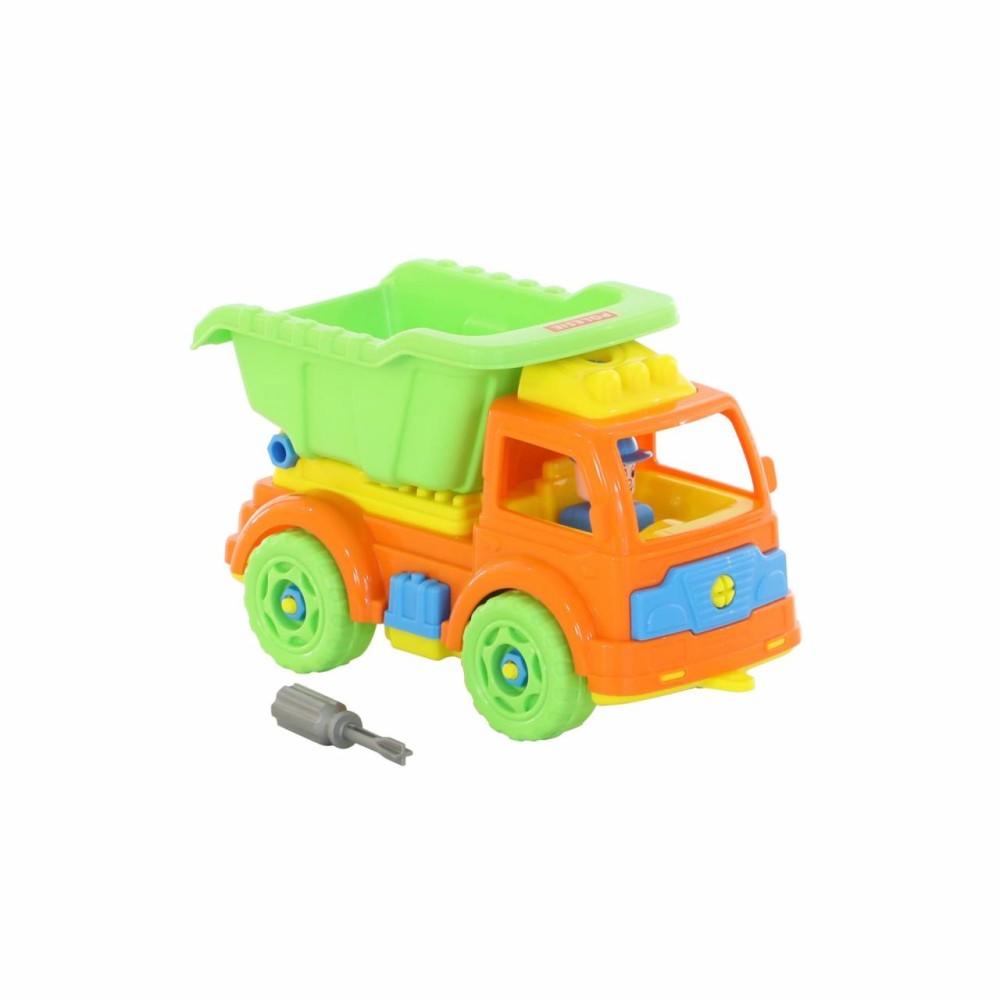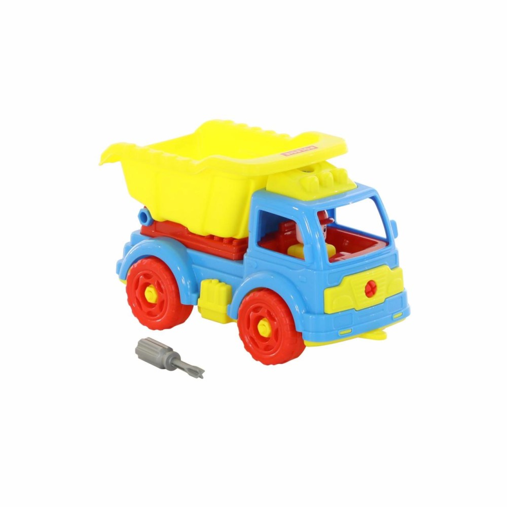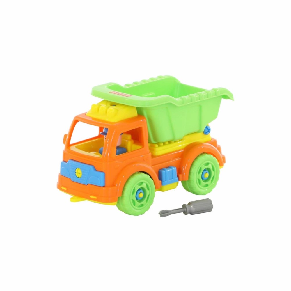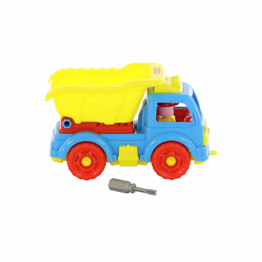 Для самых любопытных малышей, которые хотят поближе познакомиться с разными видами транспорта фабрика «Полесье» представляет конструктор-транспорт "Автомобиль-самосвал". Игрушка выполнена в ярких цветах, из качественного материала, имеет округлую форму. Все элементы самосвала представлены в виде конструктора, который соединяется с помощью пластмассовых шурупов. В наборе также идёт крестообразная отвёртка, которая разнообразит игру, сделает её ещё интереснее, позволяя без труда разбирать и собирать самосвал. Игра с таким конструктором знакомит ребёнка с первыми навыками моделирования и конструирования, а также развивает фантазию.