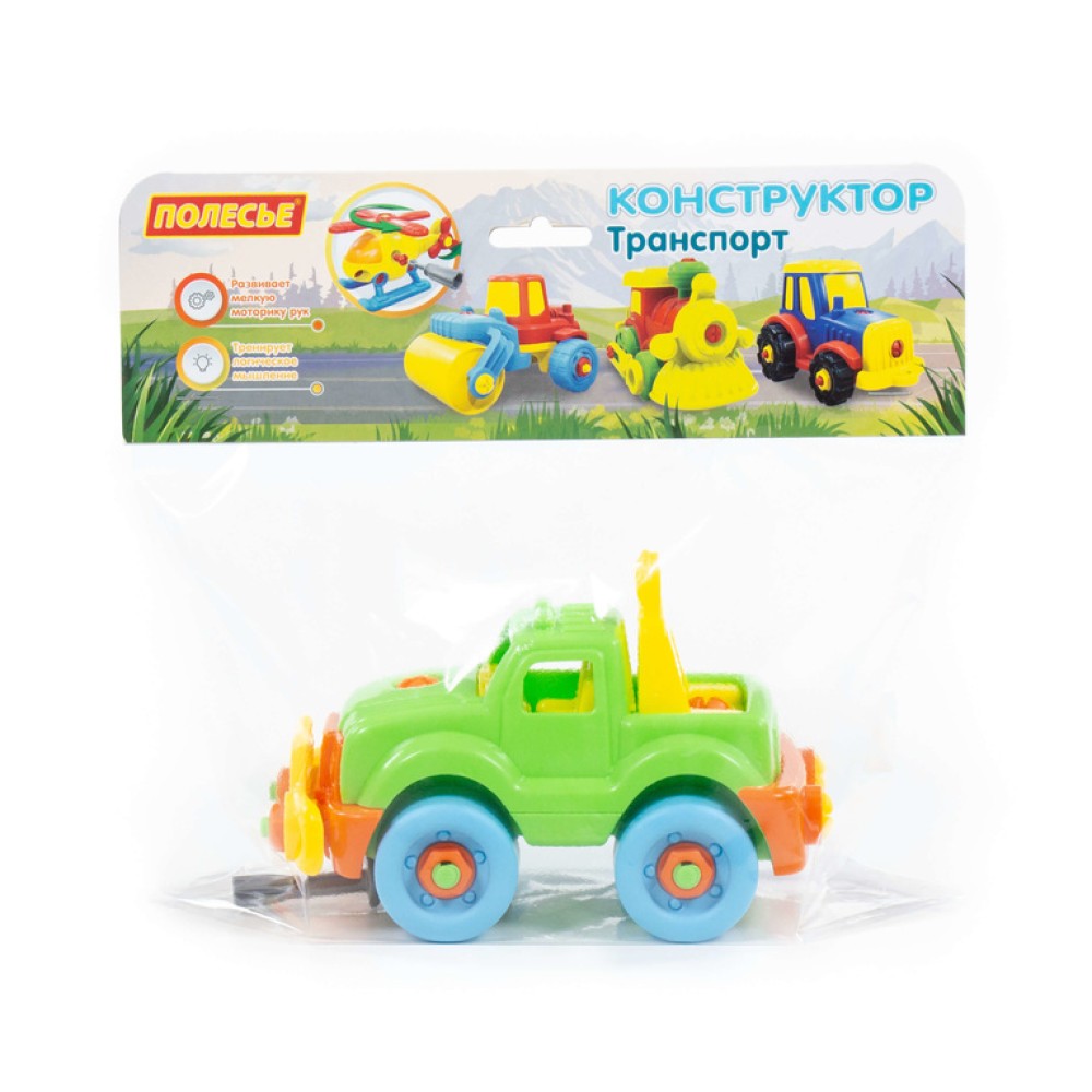 Для самых любопытных малышей, которые хотят поближе познакомиться с разными видами транспорта, фабрика «Полесье» представляет конструктор-транспорт "Джип". Игрушка выполнена в ярких цветах, из качественного материала, имеет округлую форму. Все элементы джипа представлены в виде конструктора, который соединяется с помощью пластмассовых шурупов. В наборе также идёт крестообразная отвёртка, которая разнообразит игру, сделает её еще интереснее, позволяя без труда разбирать и собирать машину. Игра с таким конструктором знакомит ребёнка с первыми навыками моделирования и конструирования, а также развивает фантазию.
