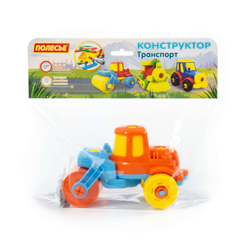 Конструктор-транспорт "Дорожный каток" (18 элементов) (в пакете)