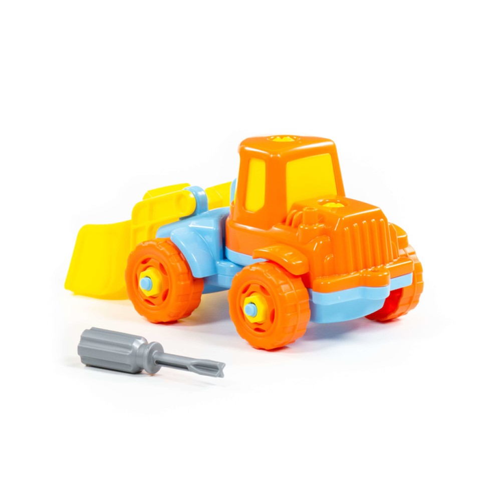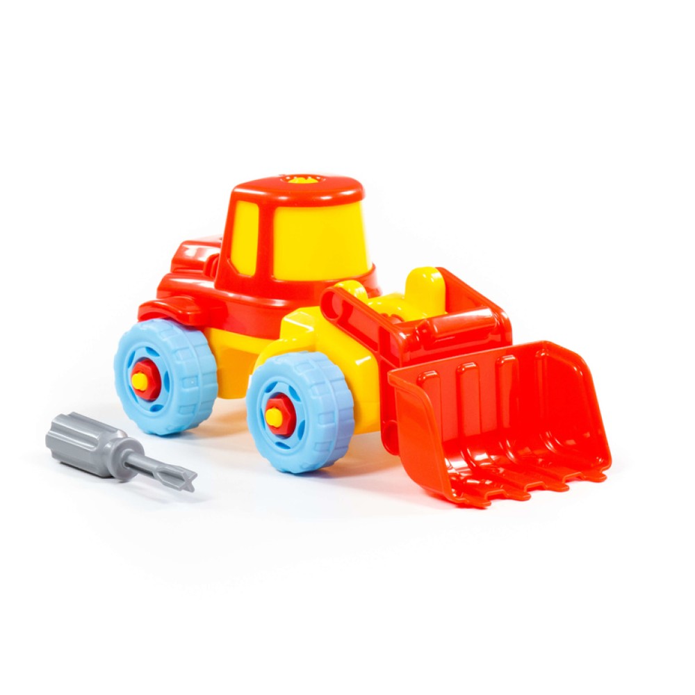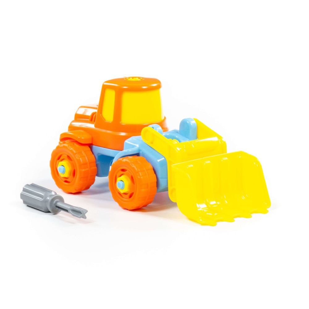 Для самых любопытных малышей, которые хотят поближе познакомиться с разными видами транспорта, фабрика «Полесье» представляет конструктор-транспорт "Погрузчик". Игрушка выполнена в ярких цветах, из качественного материала, имеет округлую форму. Все элементы погрузчика представлены в виде конструктора, который соединяется с помощью пластмассовых шурупов. В наборе также идёт крестообразная отвёртка, которая разнообразит игру, сделает её еще интереснее, позволяя без труда разбирать и собирать вертолёт. Игра с таким конструктором знакомит ребёнка с первыми навыками моделирования и конструирования, а также развивает фантазию.