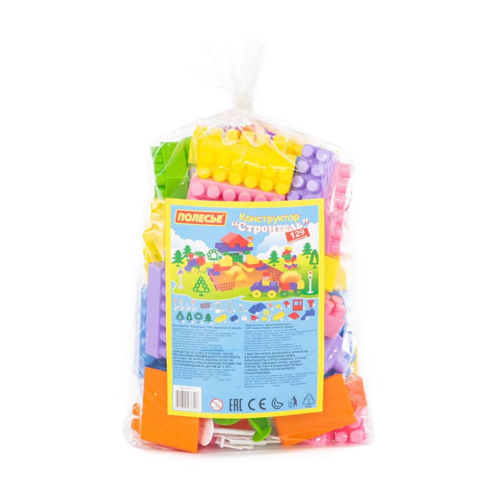 Конструктор "Строитель" (129 элементов) (в пакете)