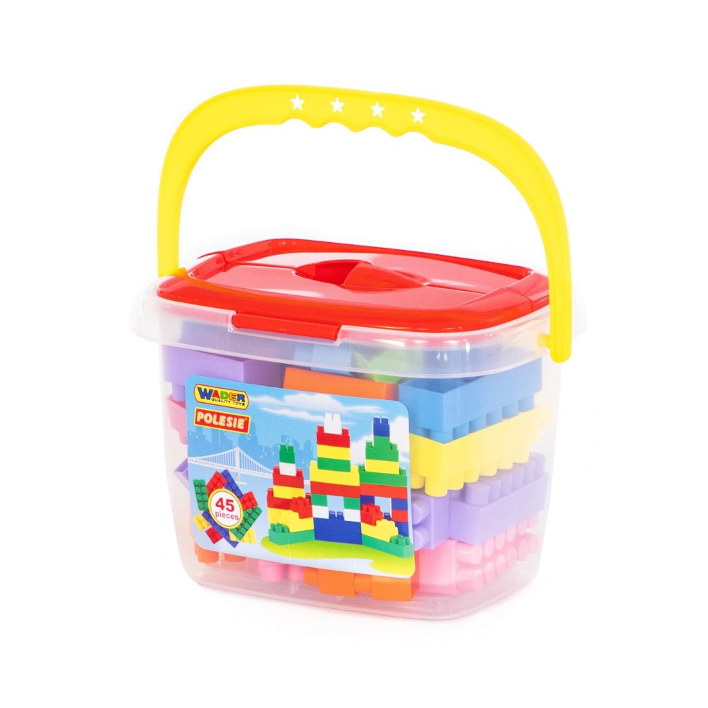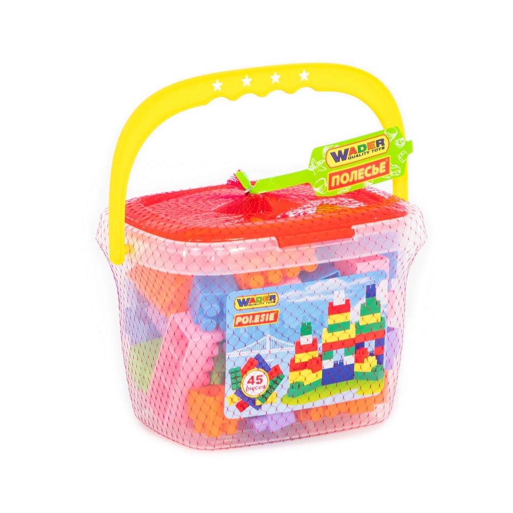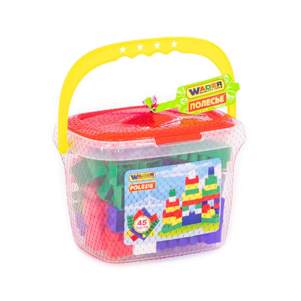 Конструктор "Строитель" (45 элементов) (в ведёрке)