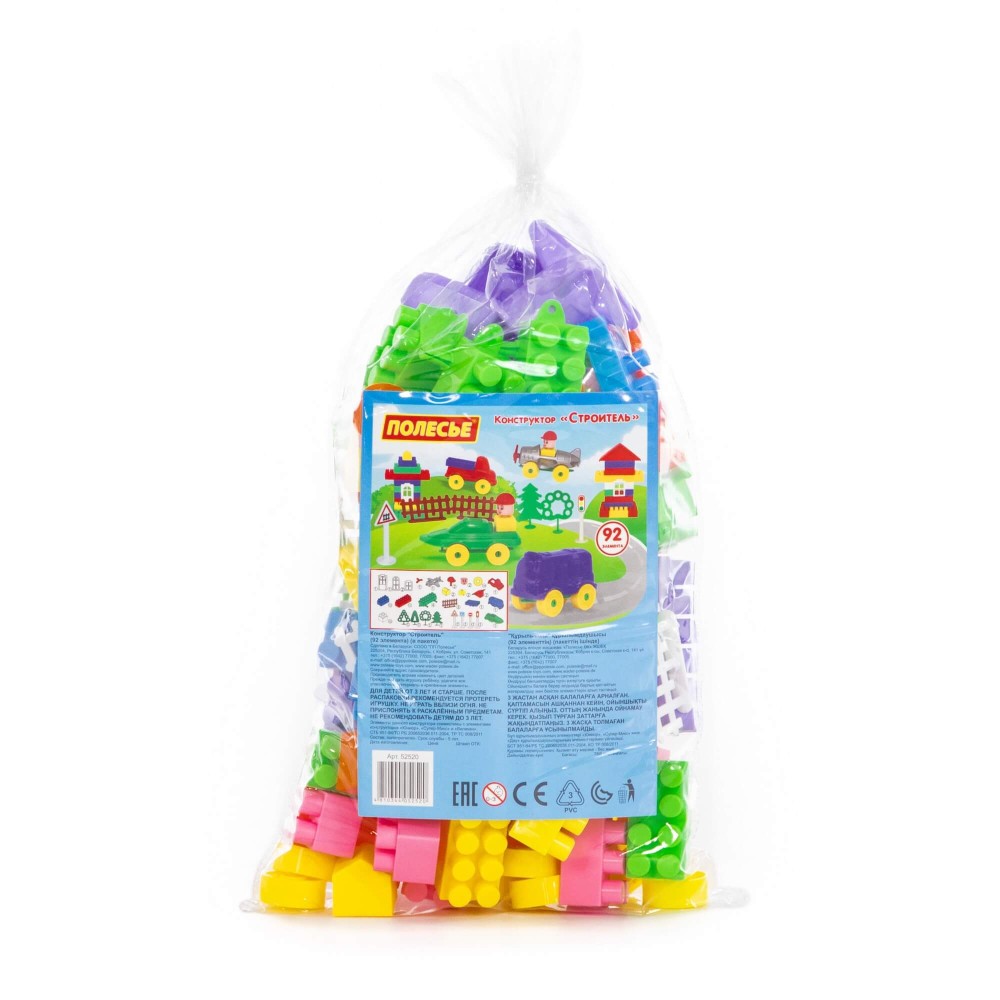 Конструктор "Строитель" (92 элемента) (в пакете)