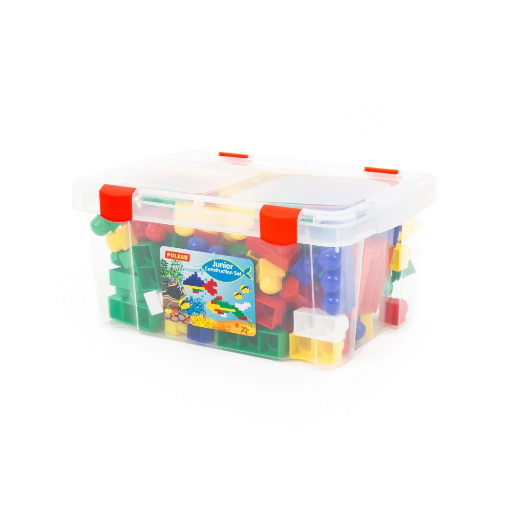 Играть конструктором «Юниор» могут даже малыши. И именно для них создана эта серия конструкторов компании «Полесье». Элементы конструктора имеют объёмную форму и сглаженные углы, чтобы не допустить травмирования ребёнка. Игра с конструктором способствует развитию у маленького строителя мелкой моторики, он может фантазировать, создавать фигурки и башни. Конструктор состоит из 159 элементов и удобно хранится в контейнере.