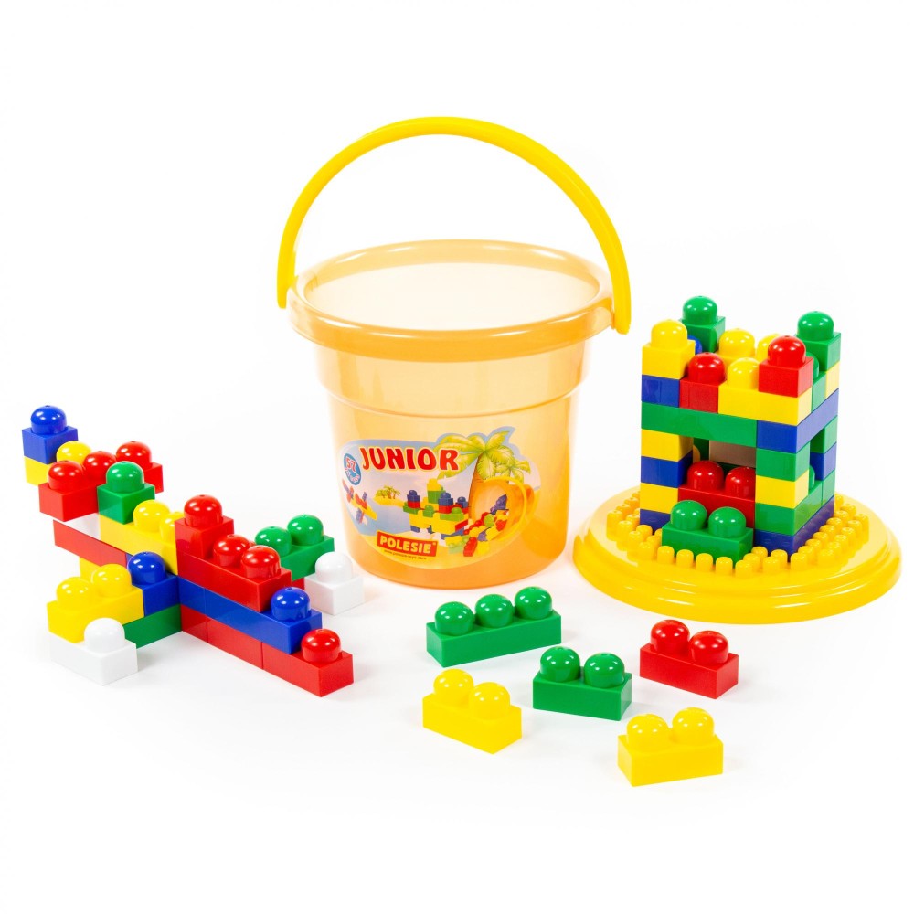 Играть конструктором «Юниор» могут даже малыши. И именно для них создана эта серия конструкторов компании «Полесье». Элементы конструктора имеют объёмную форму и сглаженные углы, чтобы не допустить травмирования ребёнка. Игра с конструктором способствует развитию у маленького строителя мелкой моторики рук, логического мышления. Он может фантазировать, создавать фигурки и башни. Удобно хранить и перемещать конструктор позволяет функциональная упаковка - ведро "Макси", крышка которого также является дополнением к конструктору. В наборе 57 элементов.