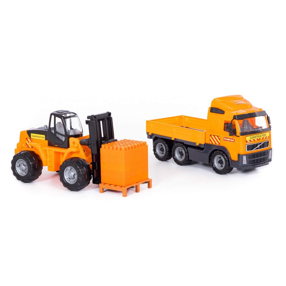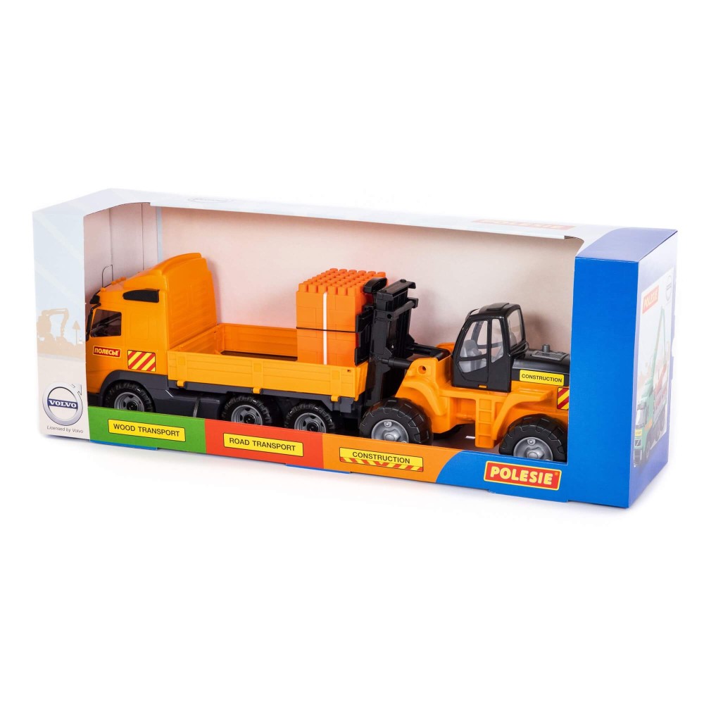 "Volvo", автомобиль бортовой+автокар+конструктор "Супер-Микс" - 30 элементов на поддоне (в коробке)