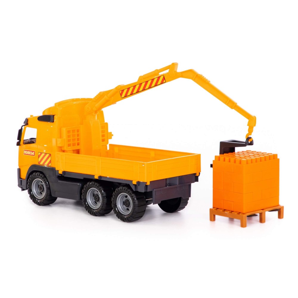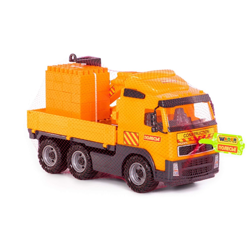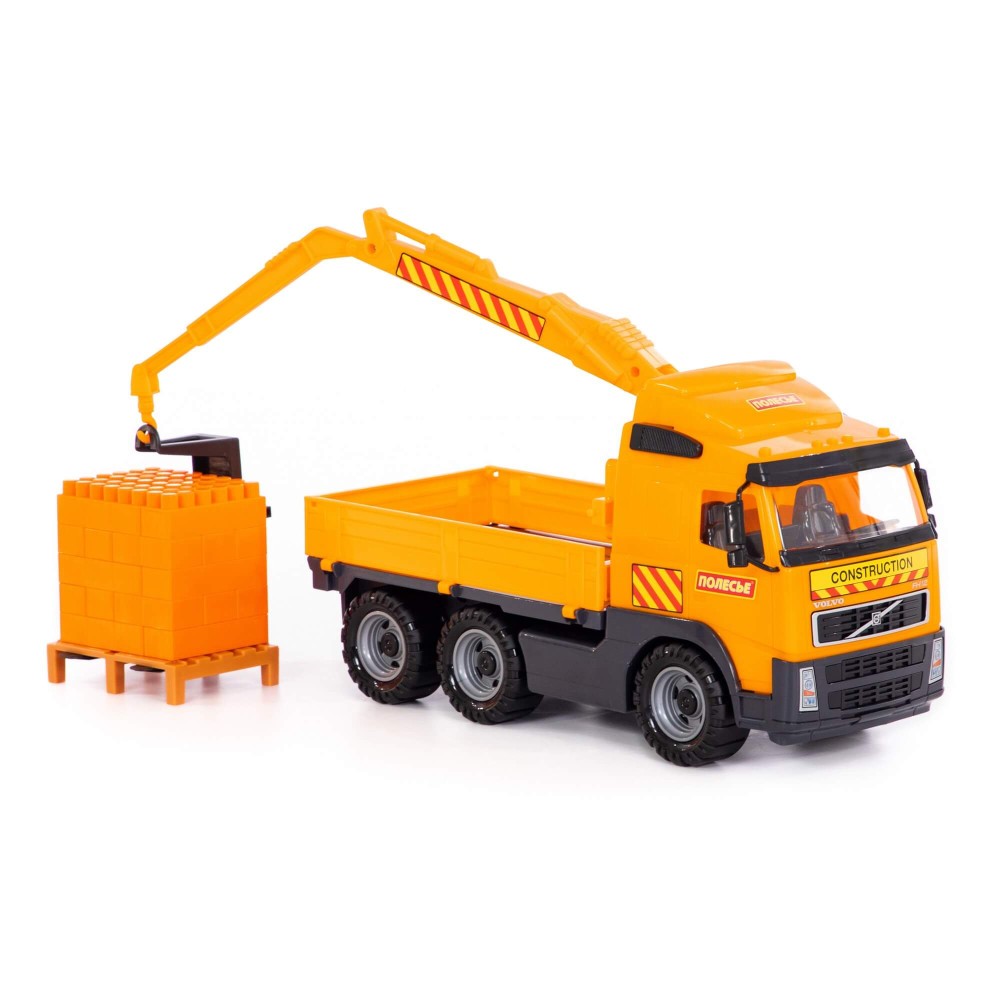 "Volvo", автомобиль-кран с манипулятором + конструктор "Супер-Микс" - 30 элементов на поддоне (в сеточке)