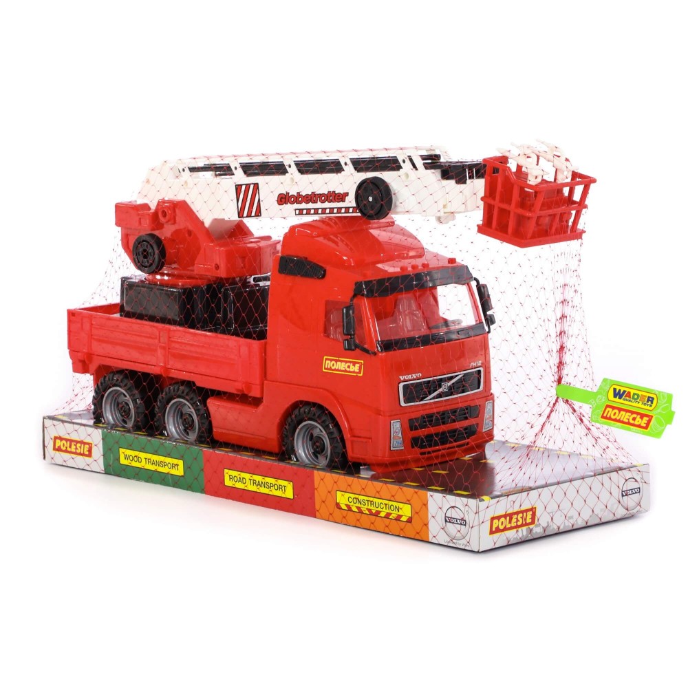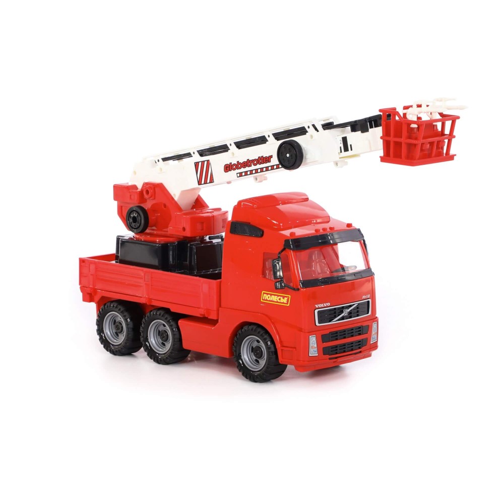 Автомобиль пожарный «Volvo» выглядит максимально реалистично. Ребёнок сможет узнать больше о специальной технике, которая задействована в спасательных операциях и в тушении пожаров на высоте. Автомобиль оснащён выдвижной пожарной лестницей, угол наклона которой можно менять. Также предусмотрены люлька и имитация гидрантов. На поворотной платформе установлен подъёмный механизм. Платформа машины поворачивается на 360°, стрела с лестницей поднимается на 65° и выдвигается на 30 см с помощью шестеренчатого колеса. Борта кузова в данной модели откидываются. Автомобиль пожарный серии Volvo выполнен из качественного и прочного пластика.