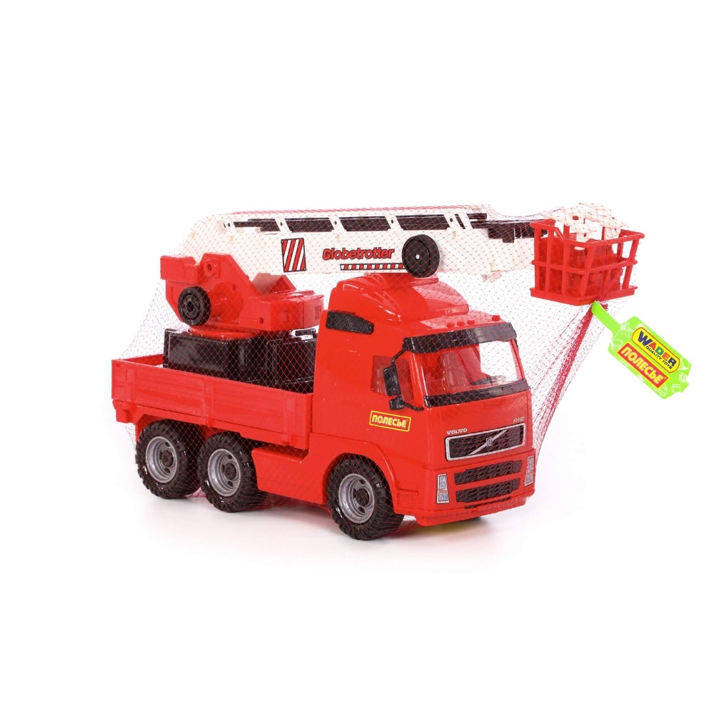 Автомобиль пожарный «Volvo» выглядит максимально реалистично. Ребёнок сможет узнать больше о специальной технике, которая задействована в спасательных операциях и в тушении пожаров на высоте. Автомобиль оснащён выдвижной пожарной лестницей, угол наклона которой можно менять. Также предусмотрены люлька и имитация гидрантов. На поворотной платформе установлен подъёмный механизм. Платформа машины поворачивается на 360°, стрела с лестницей поднимается на 65° и выдвигается на 30 см с помощью шестеренчатого колеса. Борта кузова в данной модели откидываются. Автомобиль пожарный серии Volvo выполнен из качественного и прочного пластика.