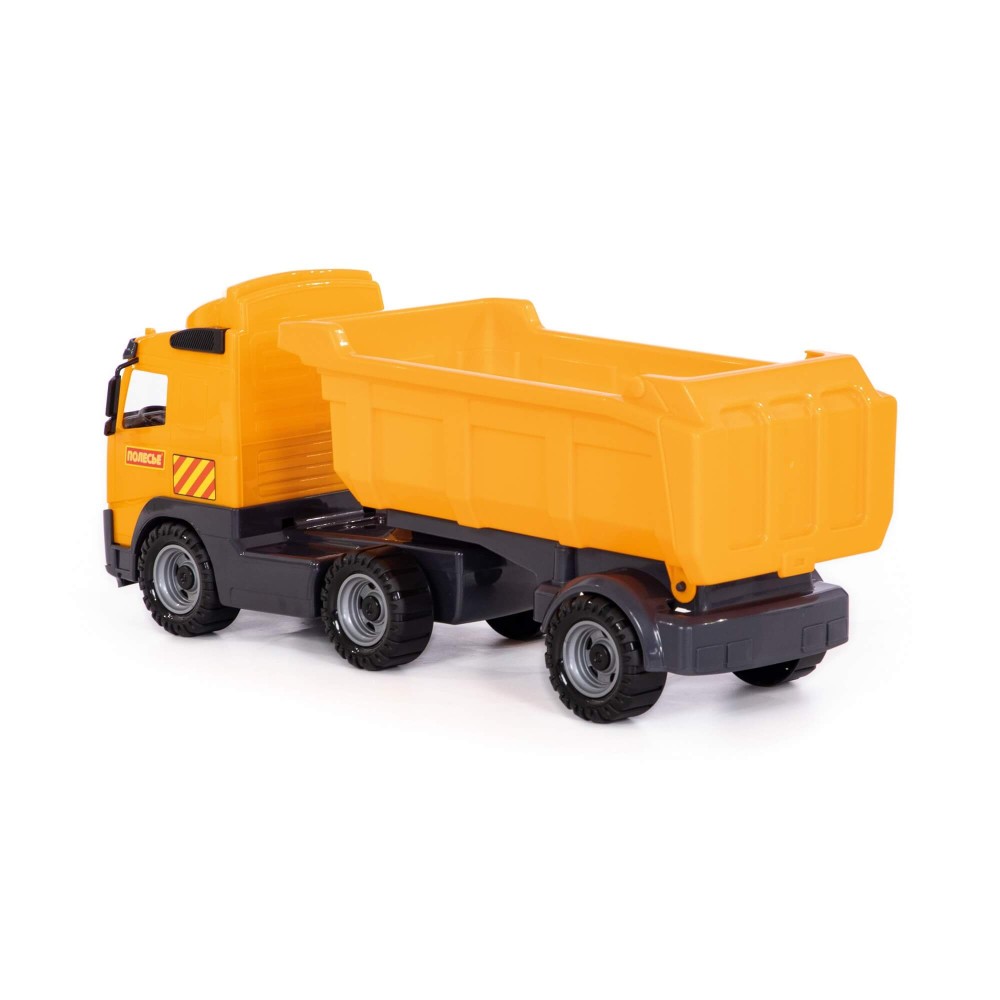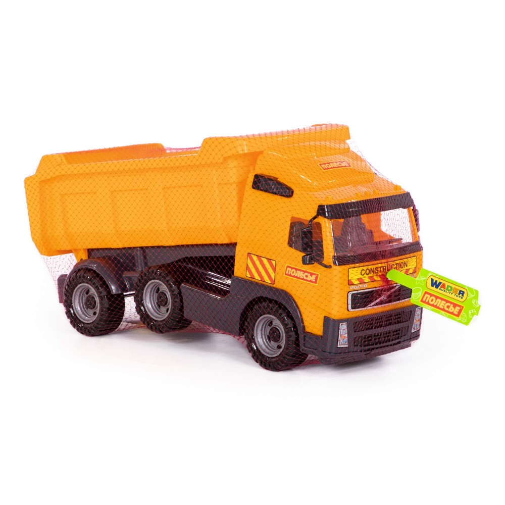 Отличный подарочный автомобиль-самосвал. Его внешний вид приближен к реальному. Автомобиль изготовлен из долговечного и красивого материала. Особенно обрадуются мальчики, мечтающие стать водителями и перевозить различные грузы. Полуприцеп автомобиля открывается, ребёнок может загрузить в кузов различные игрушки, детали, принадлежности. Такая игрушка дополнит автопарк любого малыша!