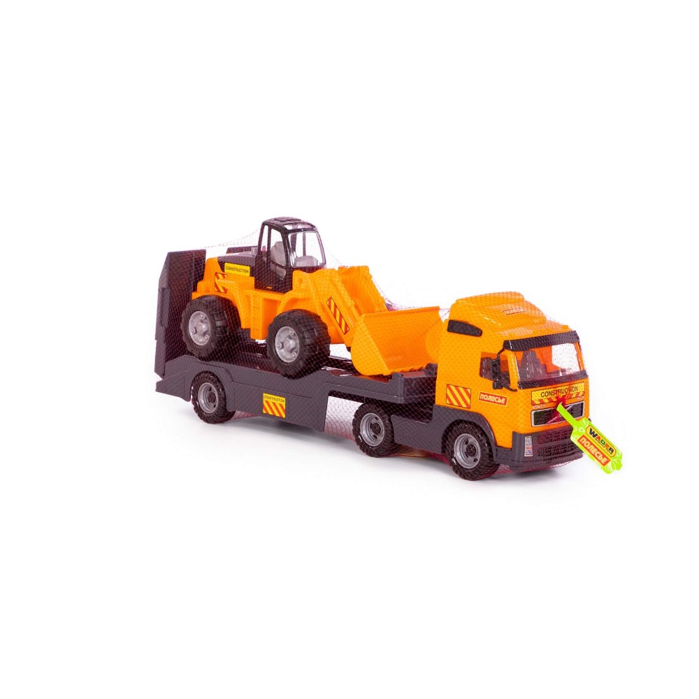 В одной упаковке — 2 игрушки! Это автомобиль-трейлер и трактор-погрузчик. Внешний вид техники приближен к дизайну прототипов. Автомобиль и трактор выполнены из прочного, качественного пластика. Автомобиль-трейлер предназначен для перевозки различной техники, а на платформу помещается трактор-погрузчик. Трейлер оснащён складным трапом. Трактор-погрузчик имеет подвижный ковш. С таким комплектом можно разыгрывать различные сценарии, а ребёнок больше узнает о большегрузной технике и её функционале.