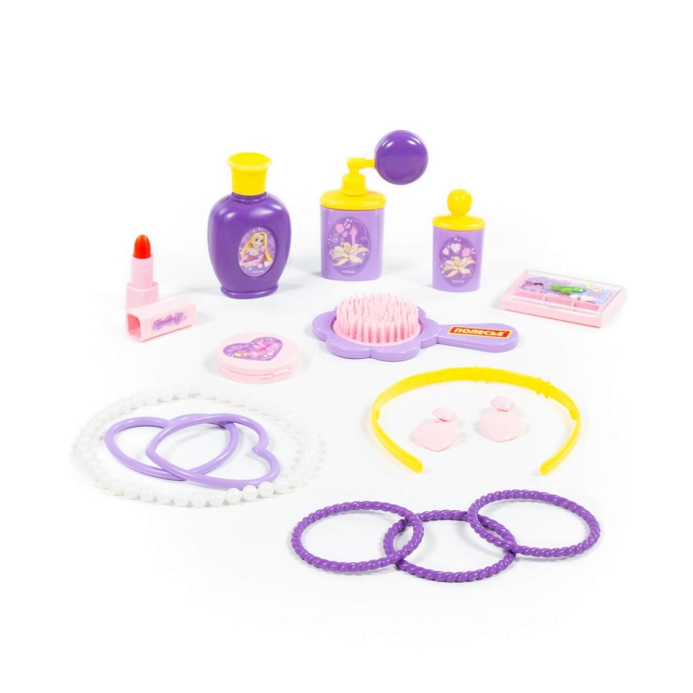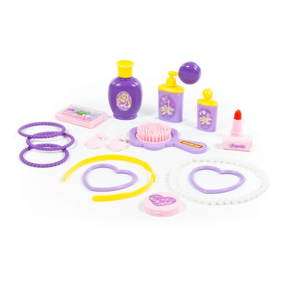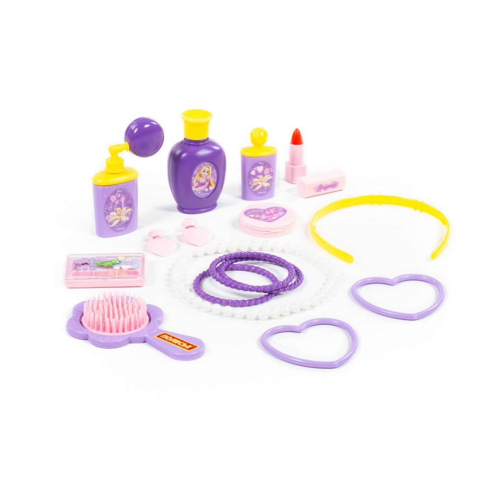 С игровым набором Disney «Рапунцель» № 2 — «Cтань принцессой!» от фабрики «Полесье» девочка сможет ощутить себя утончённой леди и принцессой диснеевских сказок! Комплект детских украшений и парикмахерских принадлежностей приучит девочку следить за собой и станет отличным подарком для поклонницы анимационного фильма Disney «Рапунцель». В набор входят:
