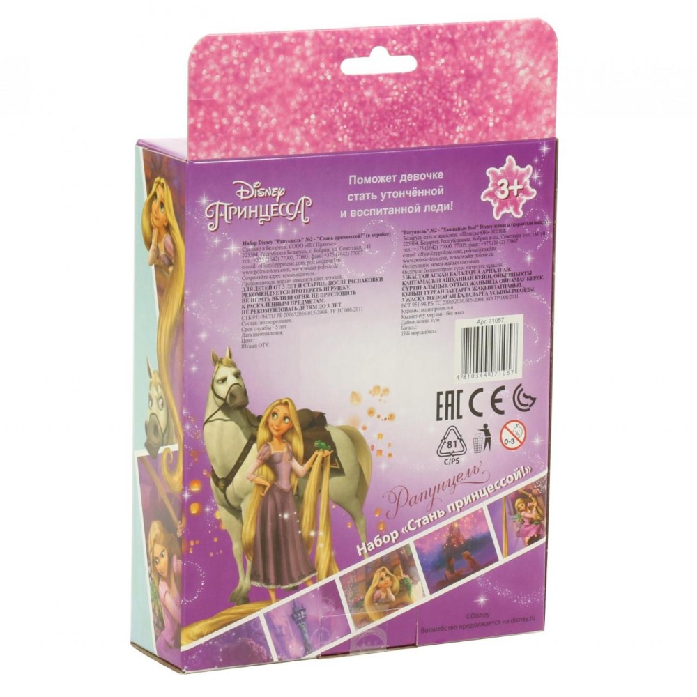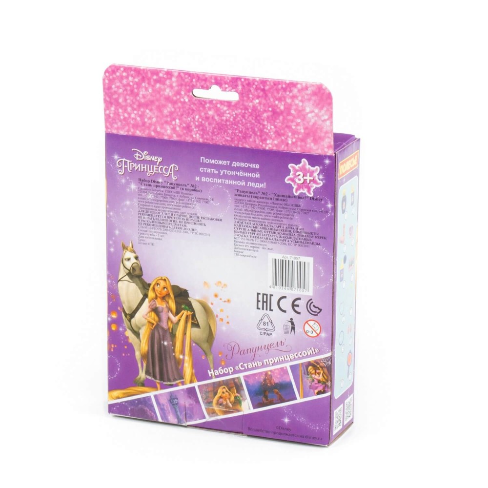 Набор упакован в красочную коробку. Набор Disney «Рапунцель» № 2 — «Cтань принцессой!» позволит девочке организовать свой салон красоты или парикмахерскую, придумывать новые образы и прически, развивая воображение и фантазию!