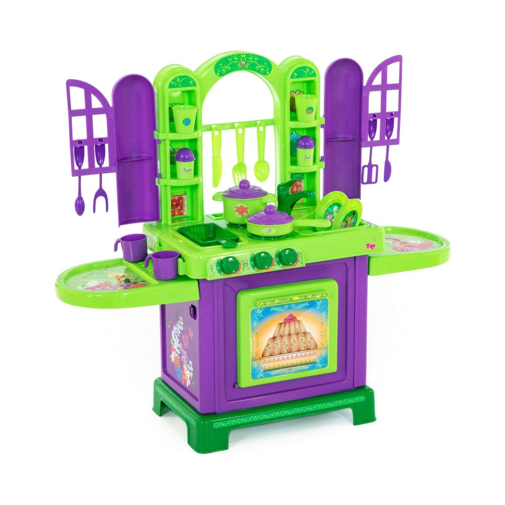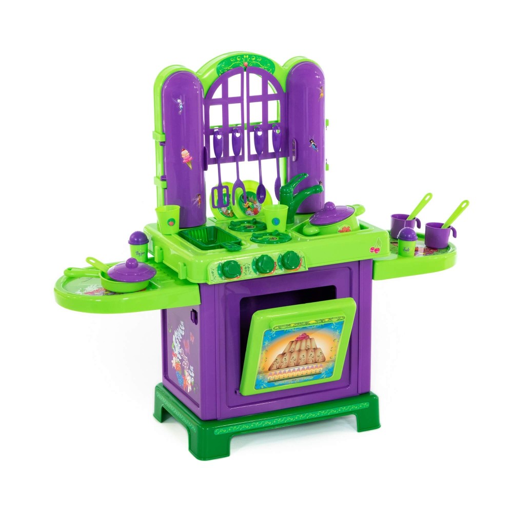 Окунись в волшебный мир фей вместе с новым набором от фабрики «Полесье»! Набор "Кухня" для маленьких хозяюшек от 3 лет станет отличным подарком для маленькой поклонницы анимационного фильма Disney «Феи». Игровой комплекс имитирует настоящую кухню с большой столешницей. При этом дизайн предполагает наличие окошек, которые дополняют конструкцию и делают игру более реалистичной. Набор оснащён несколькими зонами: зона для приготовления пищи, включающая фритюрницу; и зона для мытья посуды. На верхней панели комплекса располагается плита с конфорками, а под ней духовой шкаф. Конструкция кухни предусматривает наличие полочек, на которых удобно хранить игрушечную посуду. Игровой комплекс дополняют: