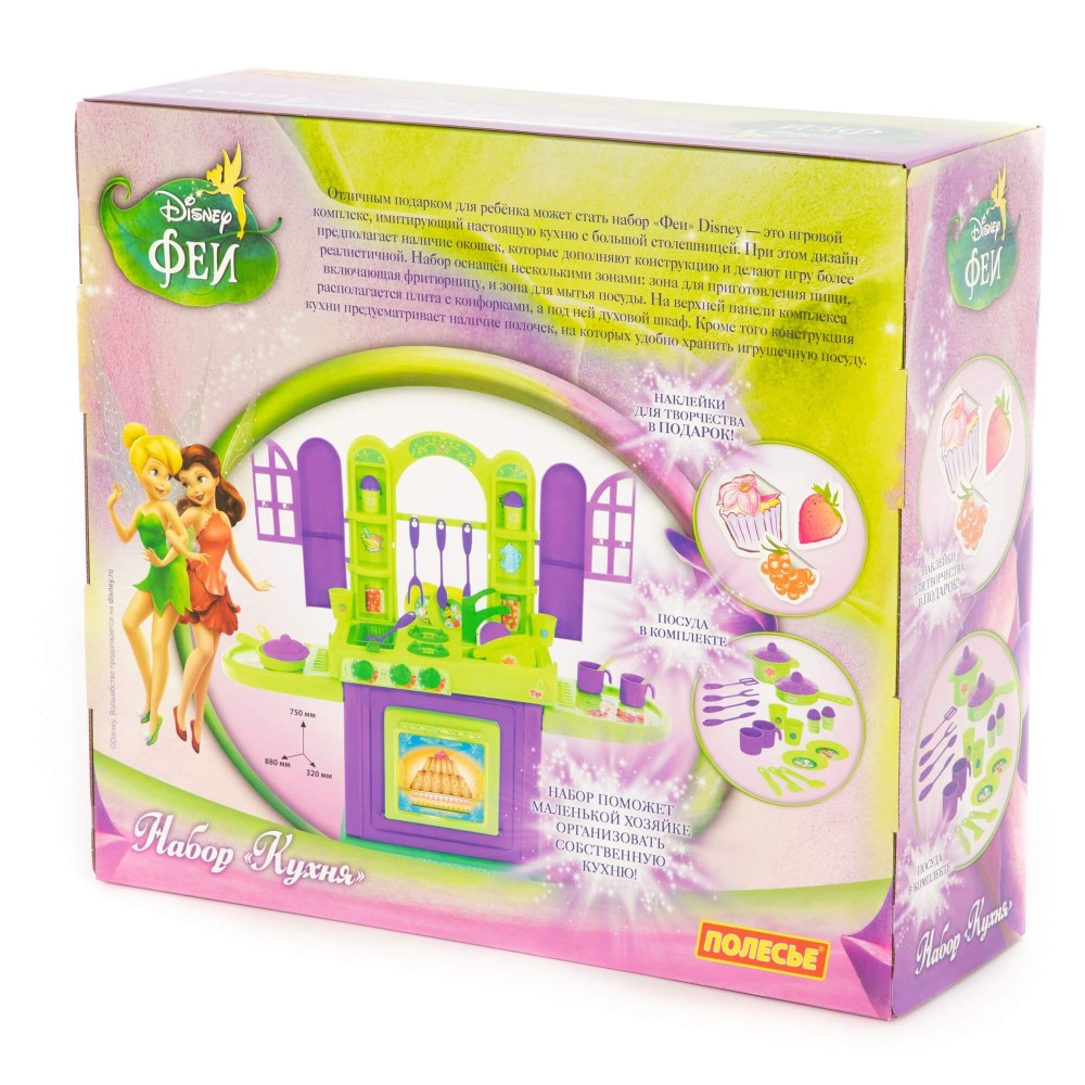 Игровой комплекс упакован в красочную коробку с любимыми героями. Набор "Кухня"/Disney "Феи" позволит девочке организовать свою кухню, придумывать новые сценарии и развивать воображение!