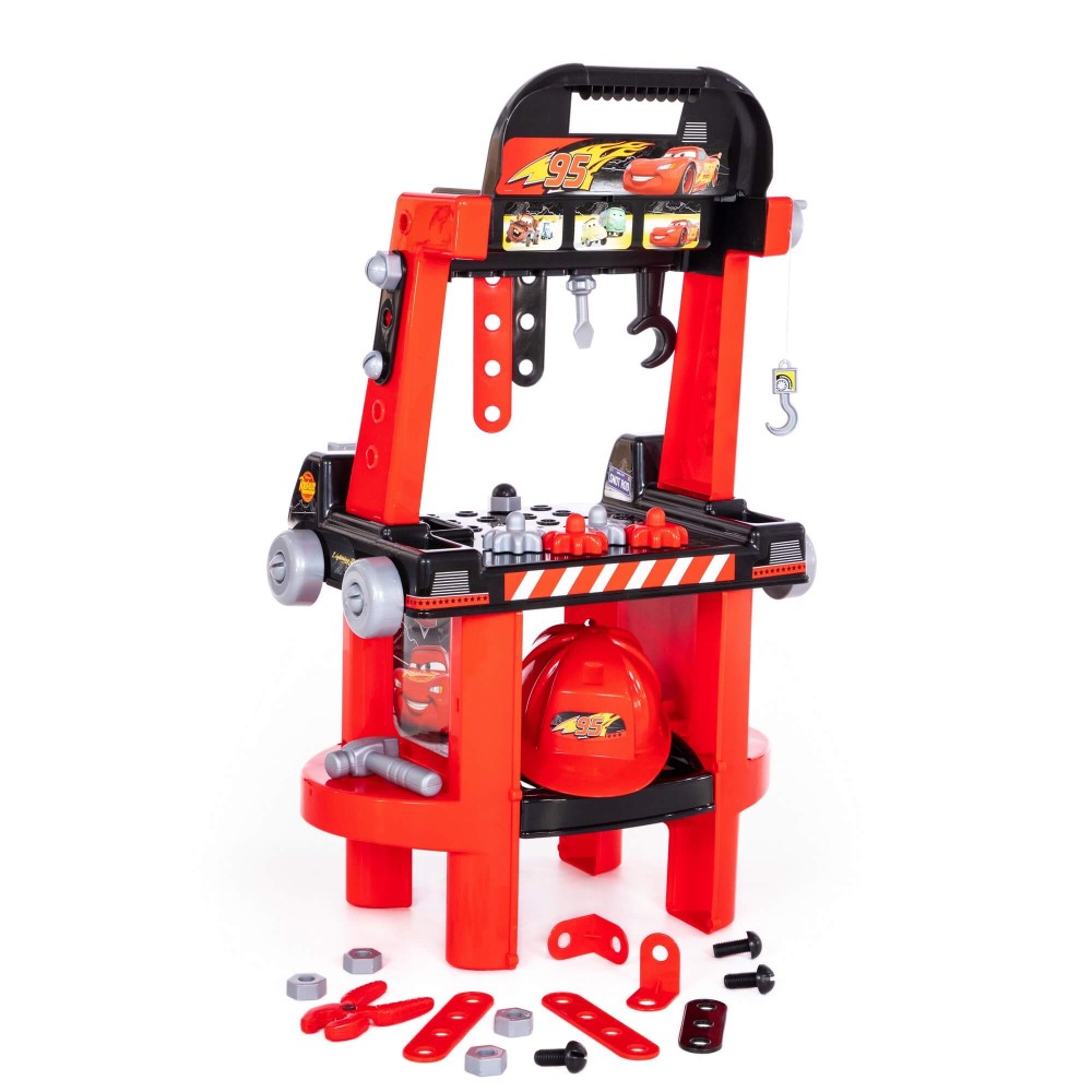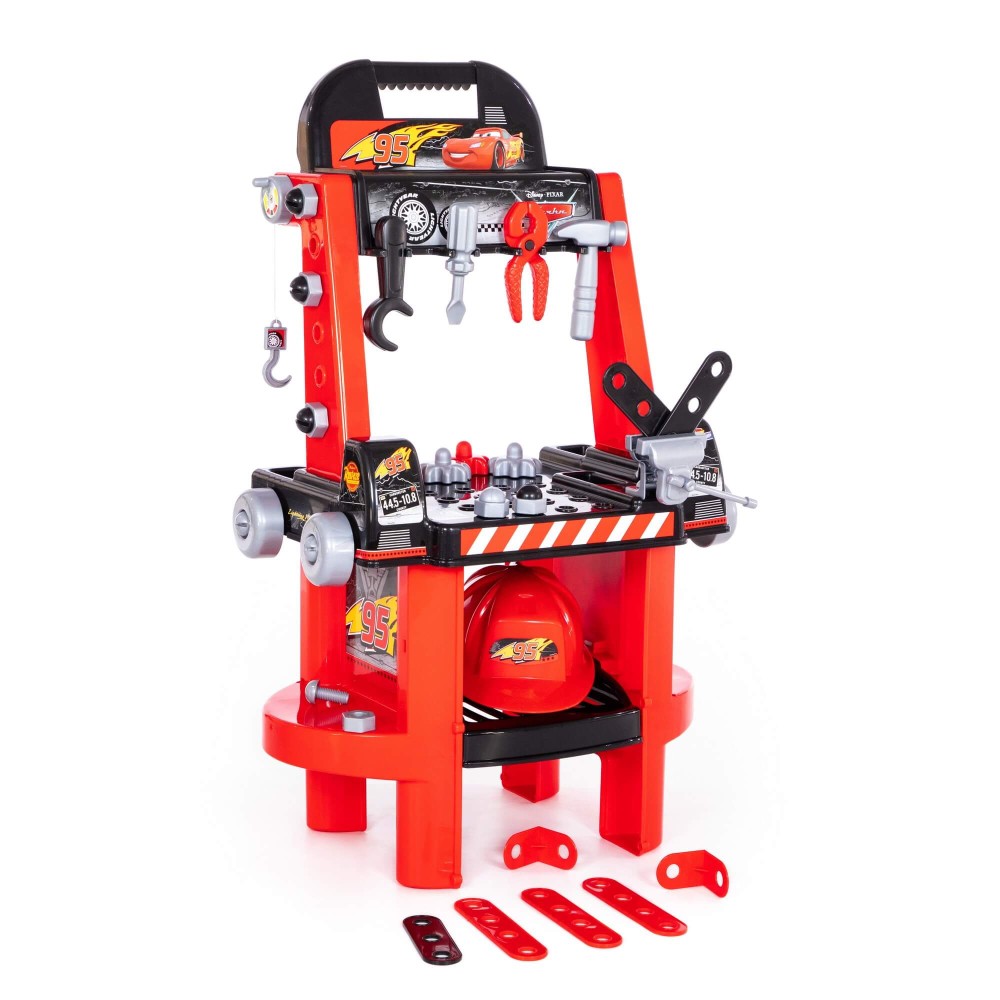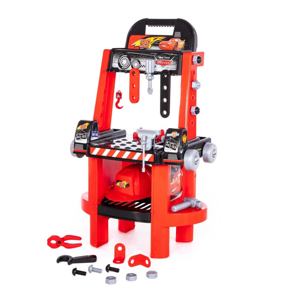Набор "Механик" Disney/Pixar "Тачки" вдохновлен известными по всему миру героями. В набор входит тележка, к которой ребенок может самостоятельно прикрутить или открутить колёса, и крючки для размещения инструментов, входящих в набор. Верстак оснащен тисками и подъемным крюком, который приводится в движение ручным механизмом. В комплекте имеется гаечный ключ, отвертка, пассатижи, молоток, каска, 10 винтов, 6 гаек, 8 соединительных элементов. С помощью инструментов, входящих в набор, ребенок может откручивать и прикручивать к столешнице винты, а также присоединять пластины. Конструкция набора предполагает наличие полочки, которая позволит удобно хранить инструменты. Набор "Механик" Disney/Pixar "Тачки" выполнен из высококачественного пластика и оформлен в ярких цветах, которые напомнят ребёнку о любимых героях анимационных фильмов Disney/Pixar «Тачки». Подходит для детей старше 3 лет.