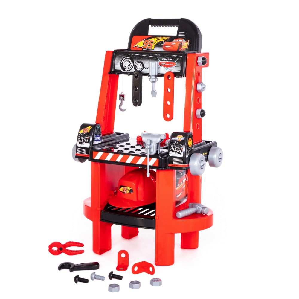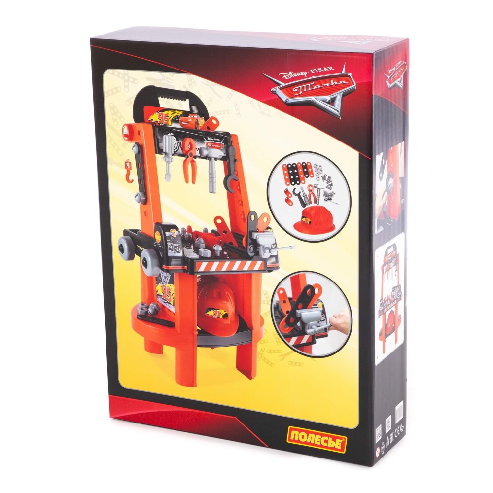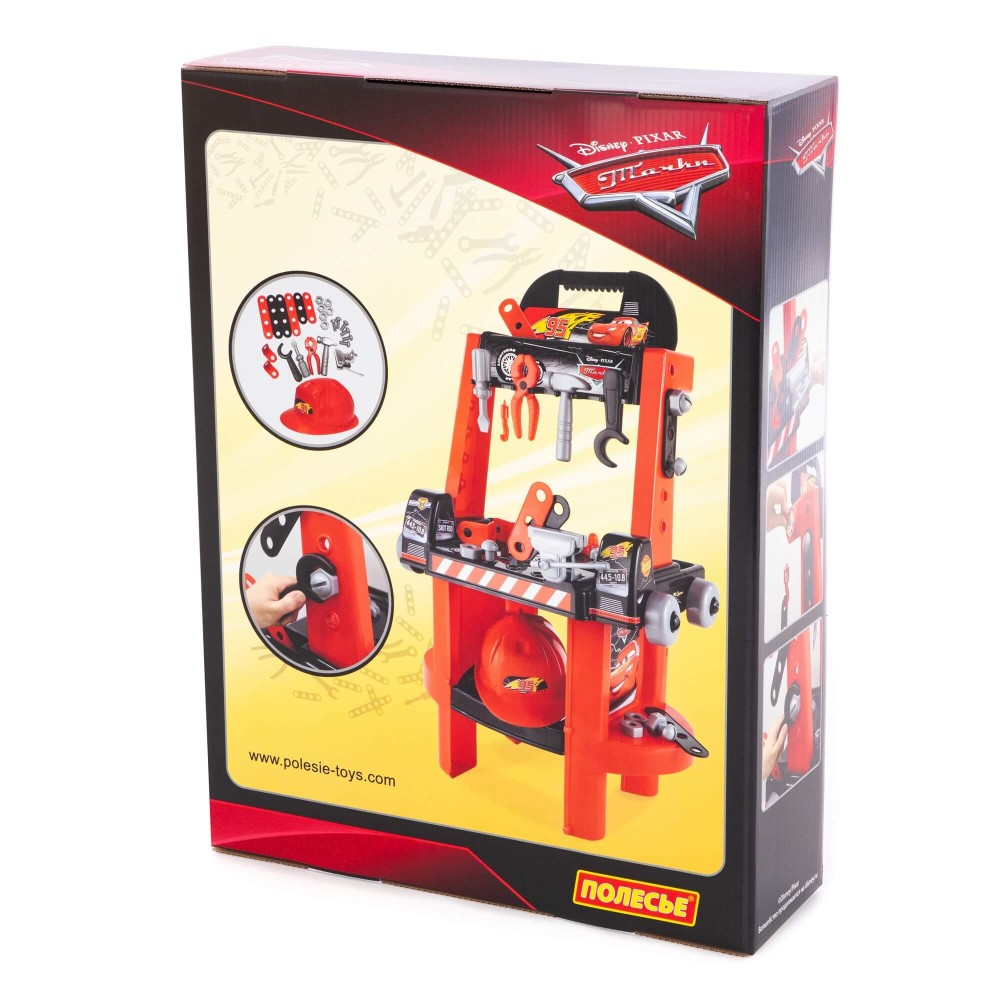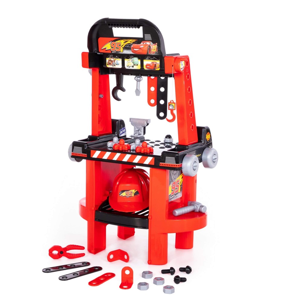 Набор "Механик" Disney/Pixar "Тачки" вдохновлен известными по всему миру героями. В набор входит тележка, к которой ребенок может самостоятельно прикрутить или открутить колёса, и крючки для размещения инструментов, входящих в набор. Верстак оснащен тисками и подъемным крюком, который приводится в движение ручным механизмом. В комплекте имеется гаечный ключ, отвертка, пассатижи, молоток, каска, 10 винтов, 6 гаек, 8 соединительных элементов. С помощью инструментов, входящих в набор, ребенок может откручивать и прикручивать к столешнице винты, а также присоединять пластины. Конструкция набора предполагает наличие полочки, которая позволит удобно хранить инструменты. Набор "Механик" Disney/Pixar "Тачки" выполнен из высококачественного пластика и оформлен в ярких цветах, которые напомнят ребёнку о любимых героях анимационных фильмов Disney/Pixar «Тачки». Подходит для детей старше 3 лет.