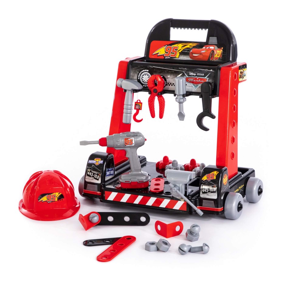 На создание набора «Механик-мини Disney/Pixar «Тачки» вдохновили известные по всему миру герои. В набор входит тележка, к которой ребёнок может самостоятельно прикрутить или открутить колёса; и крючки для размещения инструментов, входящих в набор. Верстак оснащён тисками и подъёмным крюком, который приводится в движение ручным механизмом. В комплекте имеется гаечный ключ, отвертка, пассатижи, молоток, каска, 4 винта, 4 гайки, 6 соединительных элементов. Особенность набора - электронный шуруповёрт. С его помощью ребёнок может откручивать и прикручивать к столешнице винты, а также присоединять пластины. Набор «Механик-мини Disney/Pixar «Тачки» выполнен из высококачественного пластика и оформлен в ярких цветах, которые напомнят ребёнку о любимых героях анимационных фильмов Disney/Pixar «Тачки». Подходит для детей старше 3 лет.