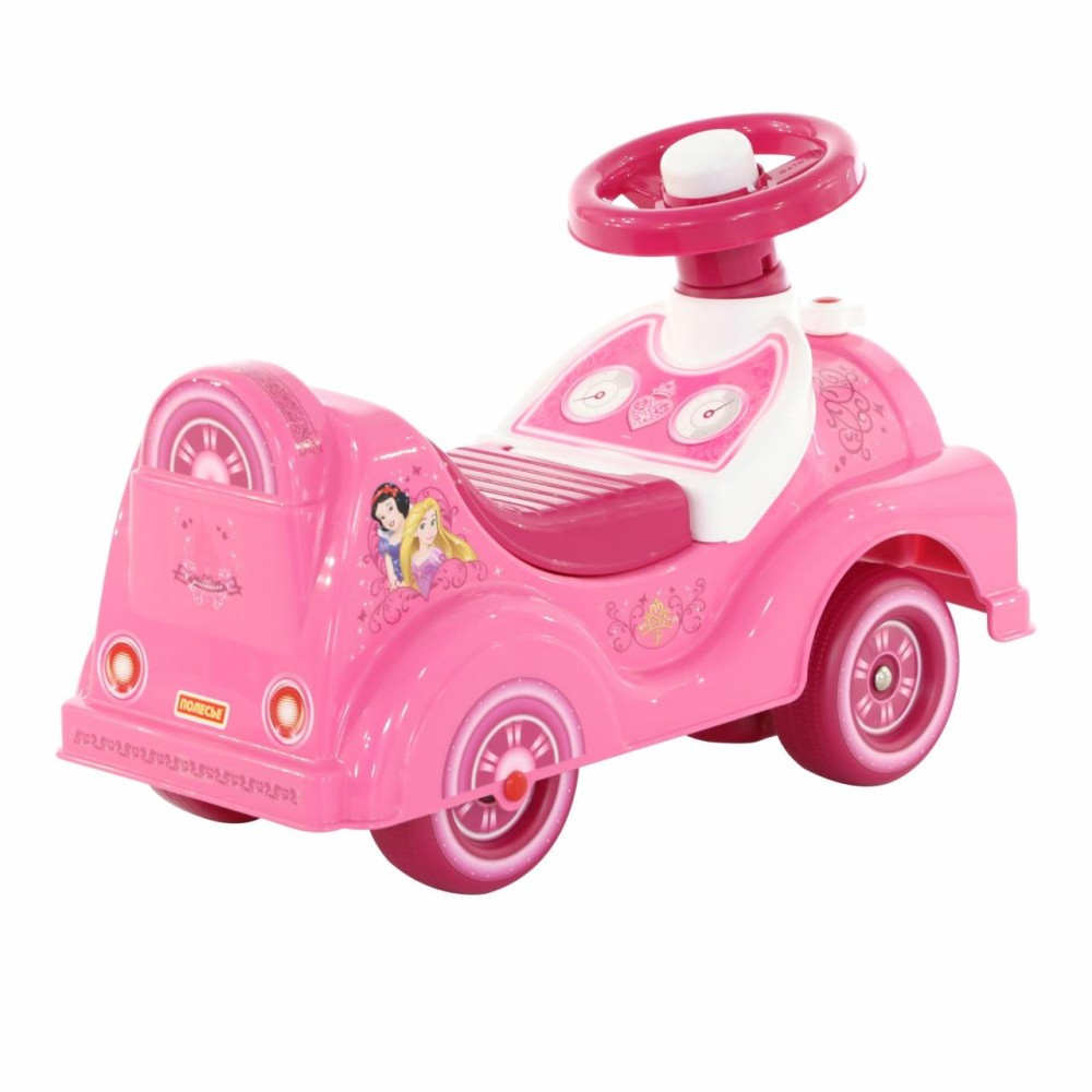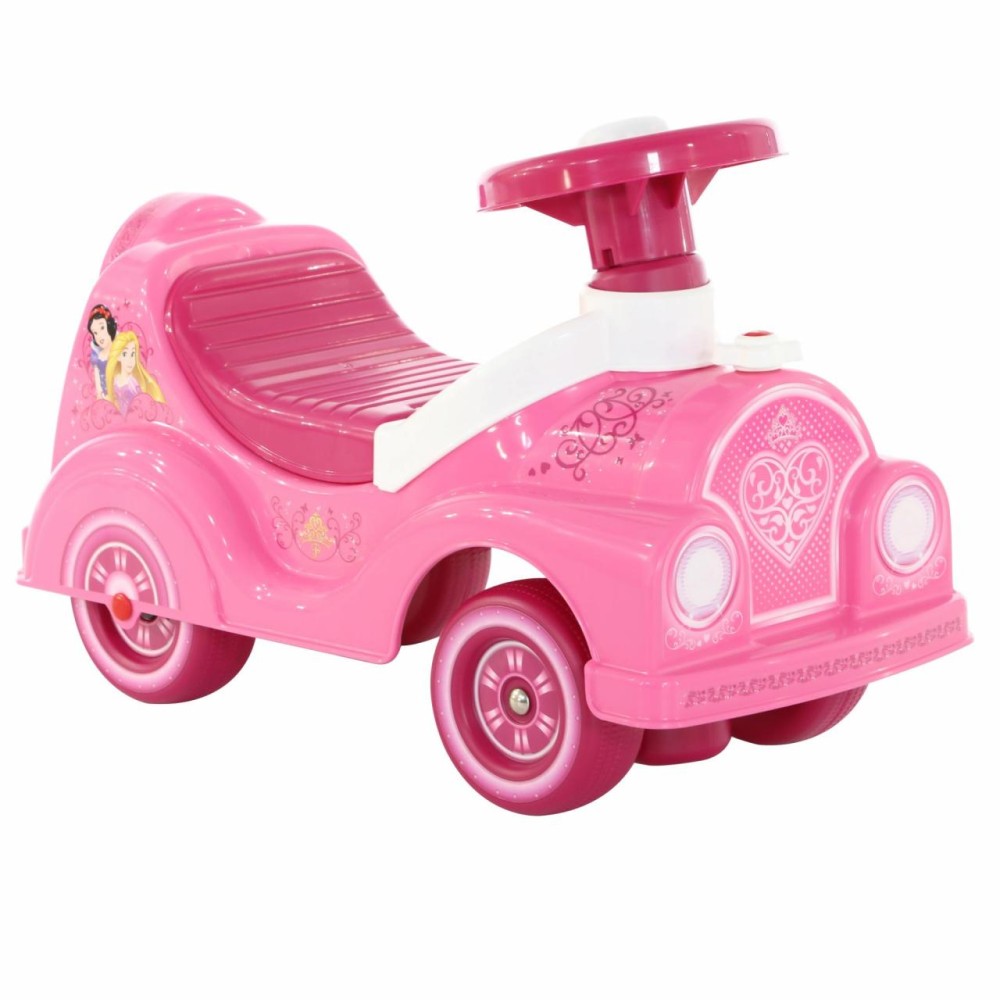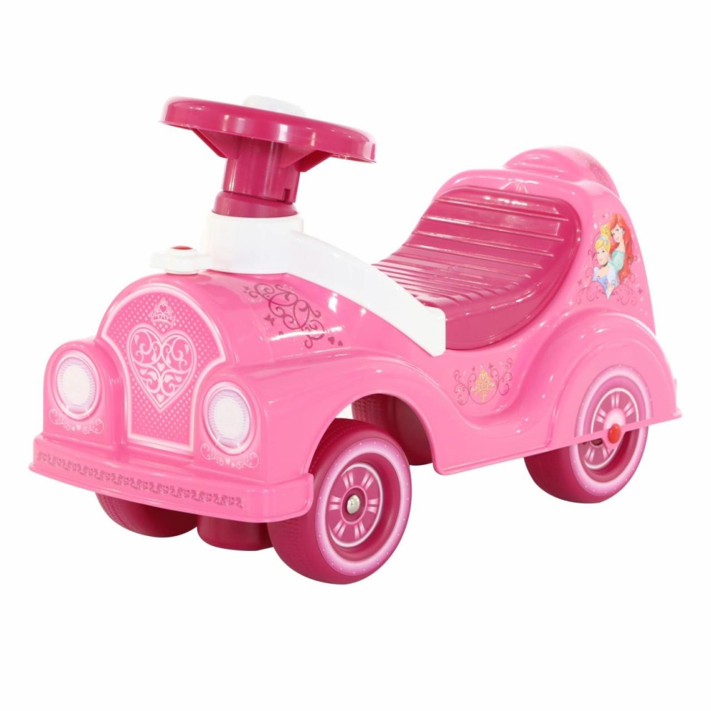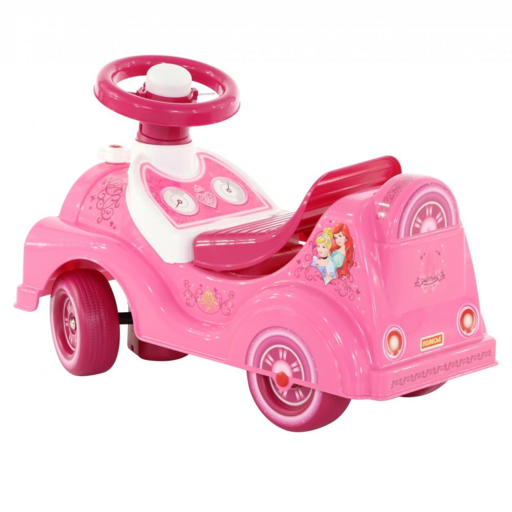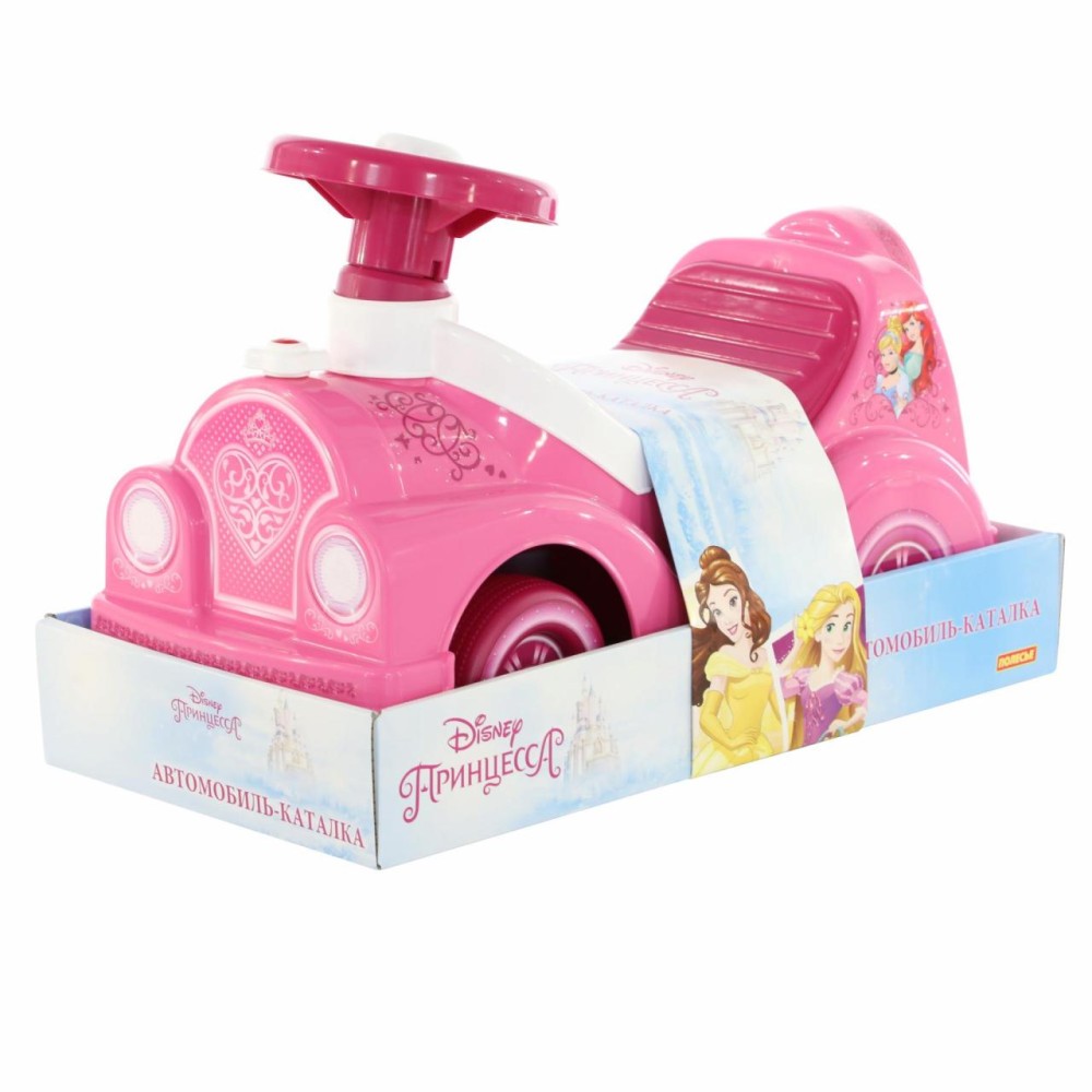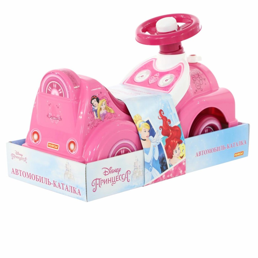 Дизайн автомобиля-каталки «Принцессы» напоминает сказочный автомобиль, украшенный многочисленными наклейками (спидометр, фары) с изображением диснеевских персонажей. Игрушка оснащена звуковым сигналом на руле и имеет удобное сиденье. Под сиденьем находится ниша-багажник для перевозки мелких игрушек. Ребёнок садится на каталку и, держась за руль, отталкивается ножками. Катание способствуют правильному развитию разных групп мышц, общей координации движений. Также малышка сможет совершенствовать навыки ходьбы, когда толкает игрушку перед собой. Продается в лотке. Автомобиль-каталка «Принцессы» обязательно станет любимой игрушкой и позволит окунуться в волшебный мир Disney!