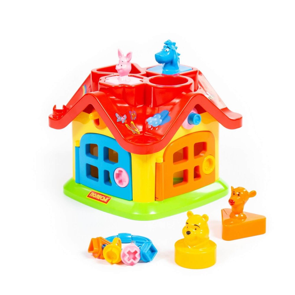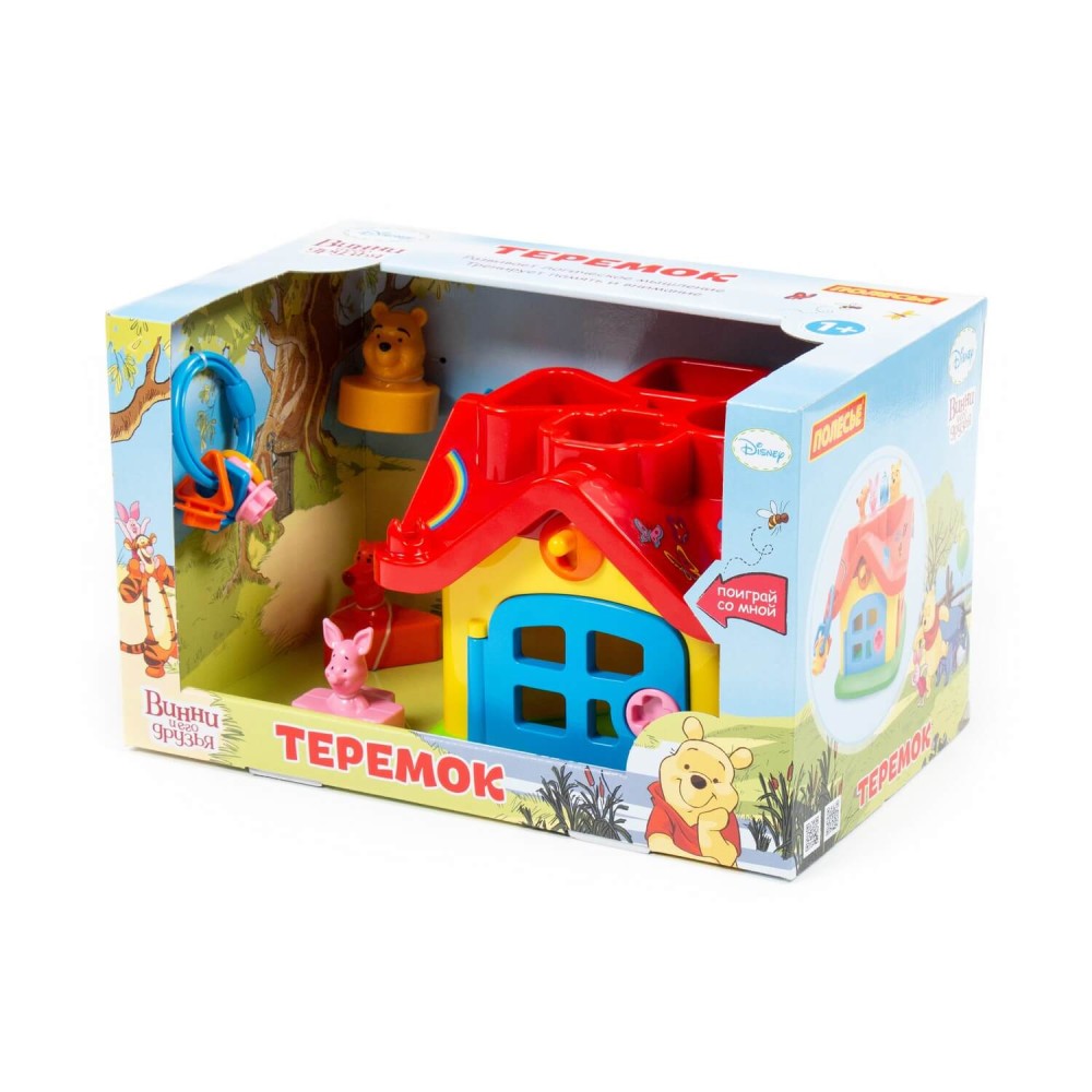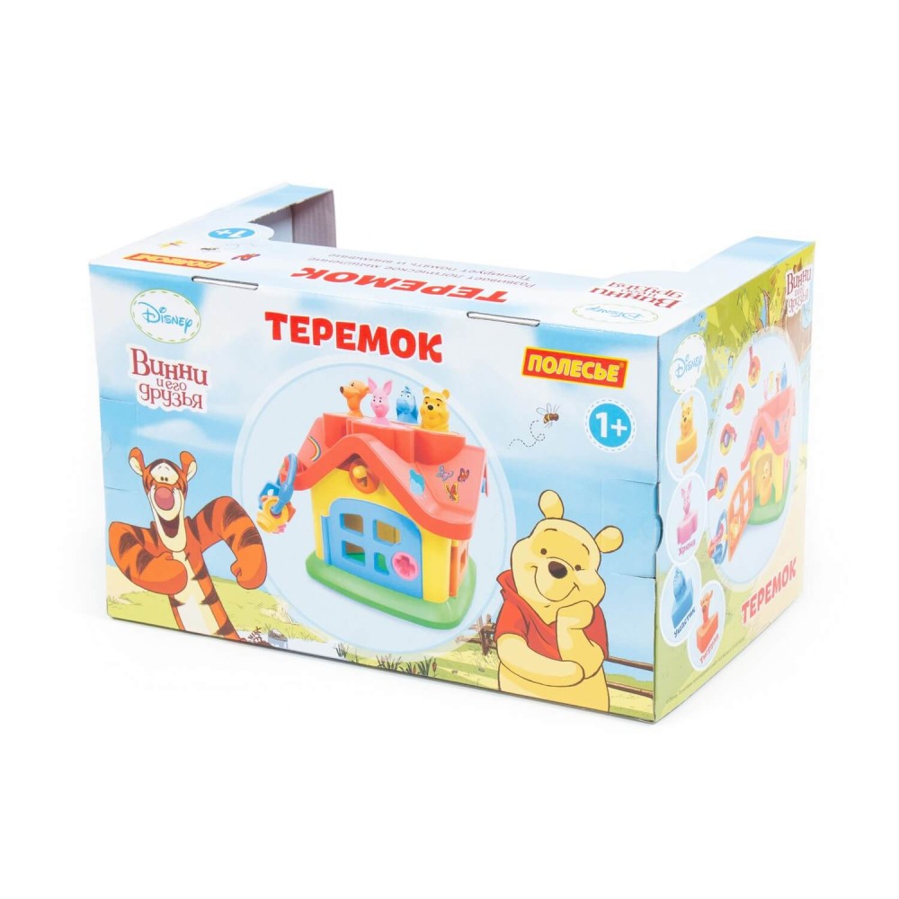 Яркий цветной теремок с 4 дверцами на замочках и героями из знаменитого мультсериала про Винни Пуха производства компании Disney знакомит ребёнка с цветами, формами, развивает мелкую моторику рук, воображение, логику, умение совершать пространственные перемещения. Внутри теремок разбит на 4 комнаты. А сами персонажи в теремок попадают через отверстия в крыше. Если правильно подобрать ключи от дверей каждой комнаты, то можно войти и через дверку. У фигурок-персонажей мультфильма разное основание: треугольник — у Тигры, крест — у Пяточка, квадрат — у ослика, круг — у медвежонка Винни. Игрушка рекомендована детям от 1 года, упакована в красочную коробку. Развивайте своих детей вместе с компанией «Полесье»!