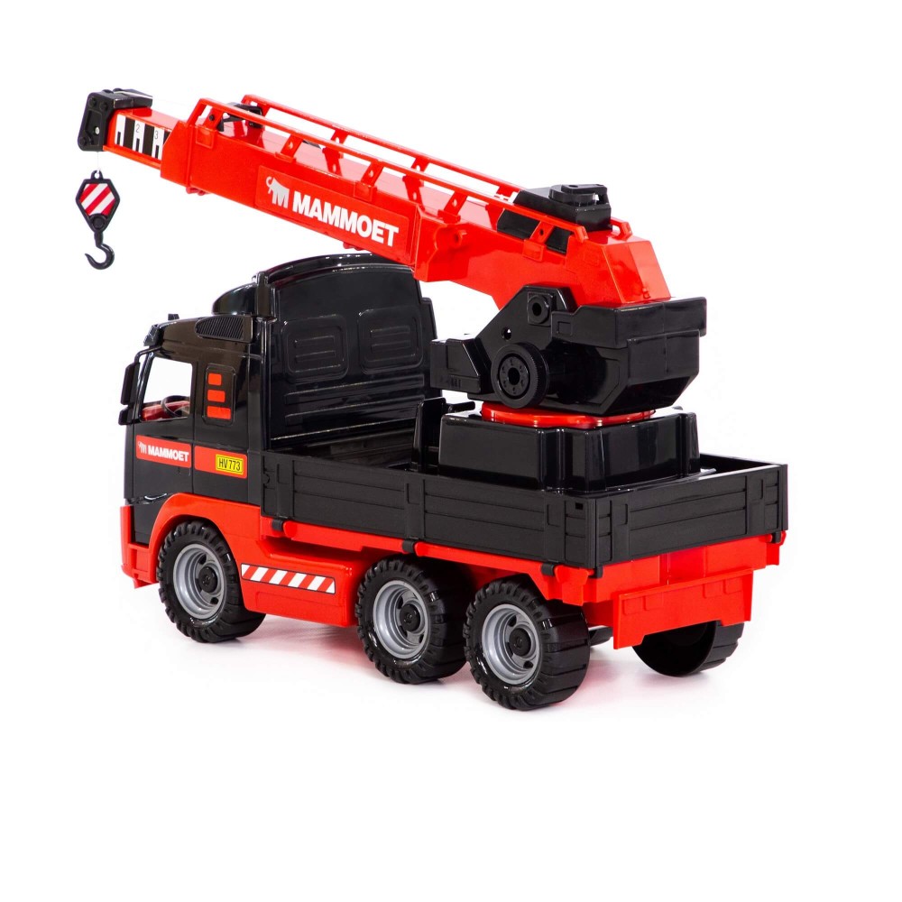 Крупнейшая в СНГ фабрика по производству игрушек «Полесье» совместно с компанией «МАММОЕТ», специализирующейся на тяжёлых подъёмных работах и транспортировке тяжёлых грузов по воде и суше, наладила выпуск лицензионной серии эксклюзивных игрушек. Дизайн игрушек разработан в соответствии с фирменными цветами компании «МАММОЕТ», что позволяет игрушке выглядеть более реалистично. Дизайн соответствует дизайну оригинальных большегрузов шведской компании Volvo. Автомобиль-кран уникален тем, что подъёмный механизм работает как у настоящего крана. Платформа крана поворачивается на 360°, стрела крана поднимается на 45° и выдвигается. Трос в виде верёвочки опускается с помощью лебёдки на 50 см. Кроме того, борта автомобиля можно открыть или снять. Автомобиль надёжный, имеет достойный внешний вид и относится к подарочной серии.