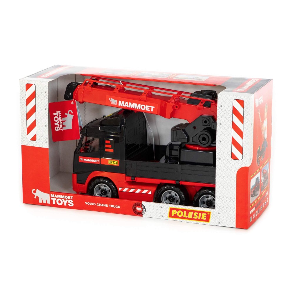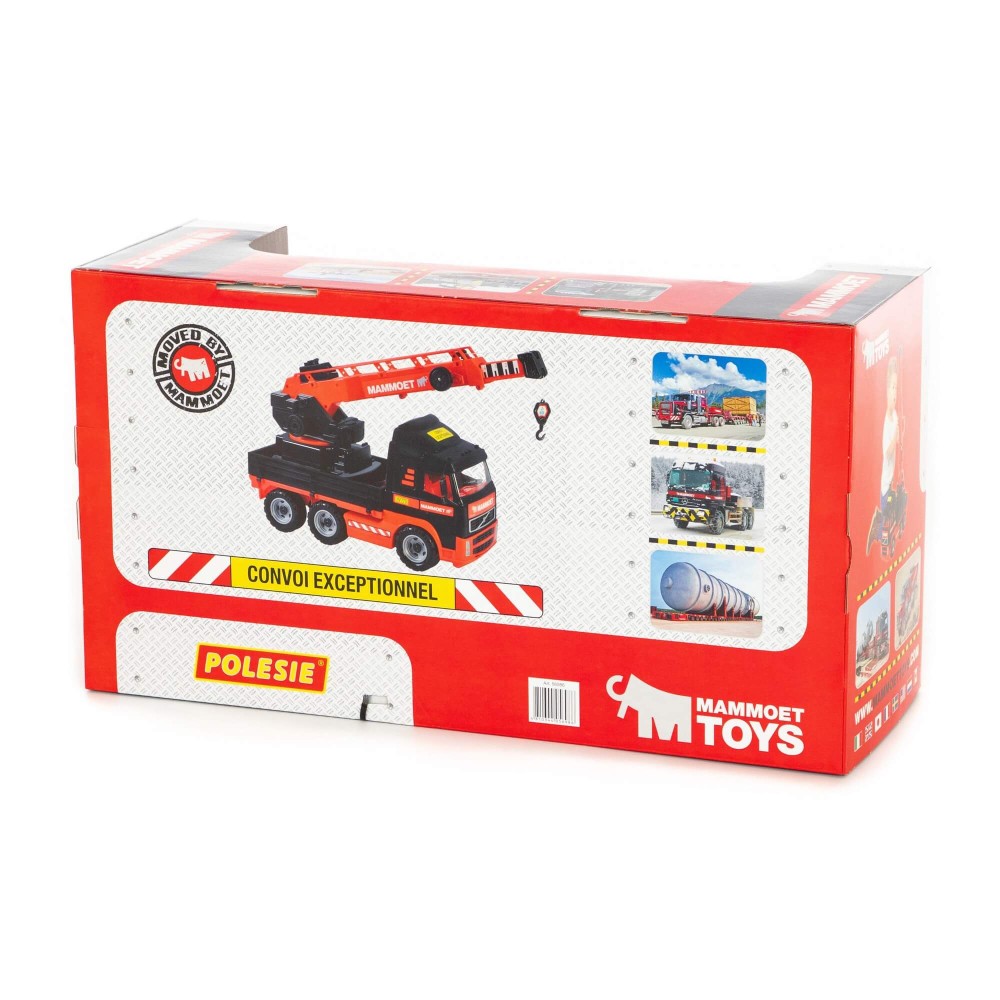 Крупнейшая в СНГ фабрика по производству игрушек «Полесье» совместно с компанией «МАММОЕТ», специализирующейся на тяжёлых подъёмных работах и транспортировке тяжёлых грузов по воде и суше, наладила выпуск лицензионной серии эксклюзивных игрушек. Дизайн игрушек разработан в соответствии с фирменными цветами компании «МАММОЕТ», что позволяет игрушке выглядеть более реалистично. Автомобиль-кран уникален тем, что подъёмный механизм работает как у настоящего крана. Платформа крана поворачивается на 360°, стрела крана поднимается на 45° и выдвигается. Трос в виде верёвочки опускается с помощью лебёдки на 50 см. Кроме того, борта автомобиля можно открыть или снять. Автомобиль надёжный, имеет достойный внешний вид и относится к подарочной серии. Продаётся в коробке.