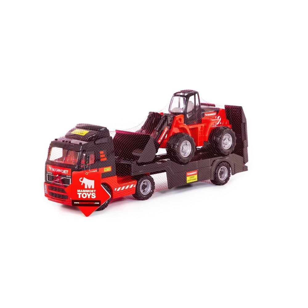 Шикарный подарочный набор, который состоит из большого автомобиля и большого трактора. Автомобиль-трейлер предназначен для перевозки различных автомобилей и техники длиной не более 43 см. Для удобства погрузки на трейлере установлен откидной трап. Полуприцеп при необходимости легко отцепить. Трактор-погрузчик, как и автомобиль, выполнен из надёжного долговечного материала. Дизайн полуприцепа соответствует дизайну оригинальных большегрузов шведской компании Volvo. Трактор имеет подвижный и вместительный ковш, делает игру на свежем воздухе более интересной. Набор выполнен в узнаваемых цветах компании МАММОЕТ, известной своей специализацией на тяжёлых подъёмных работах и транспортировке тяжёлых грузов по воде и по суше.
