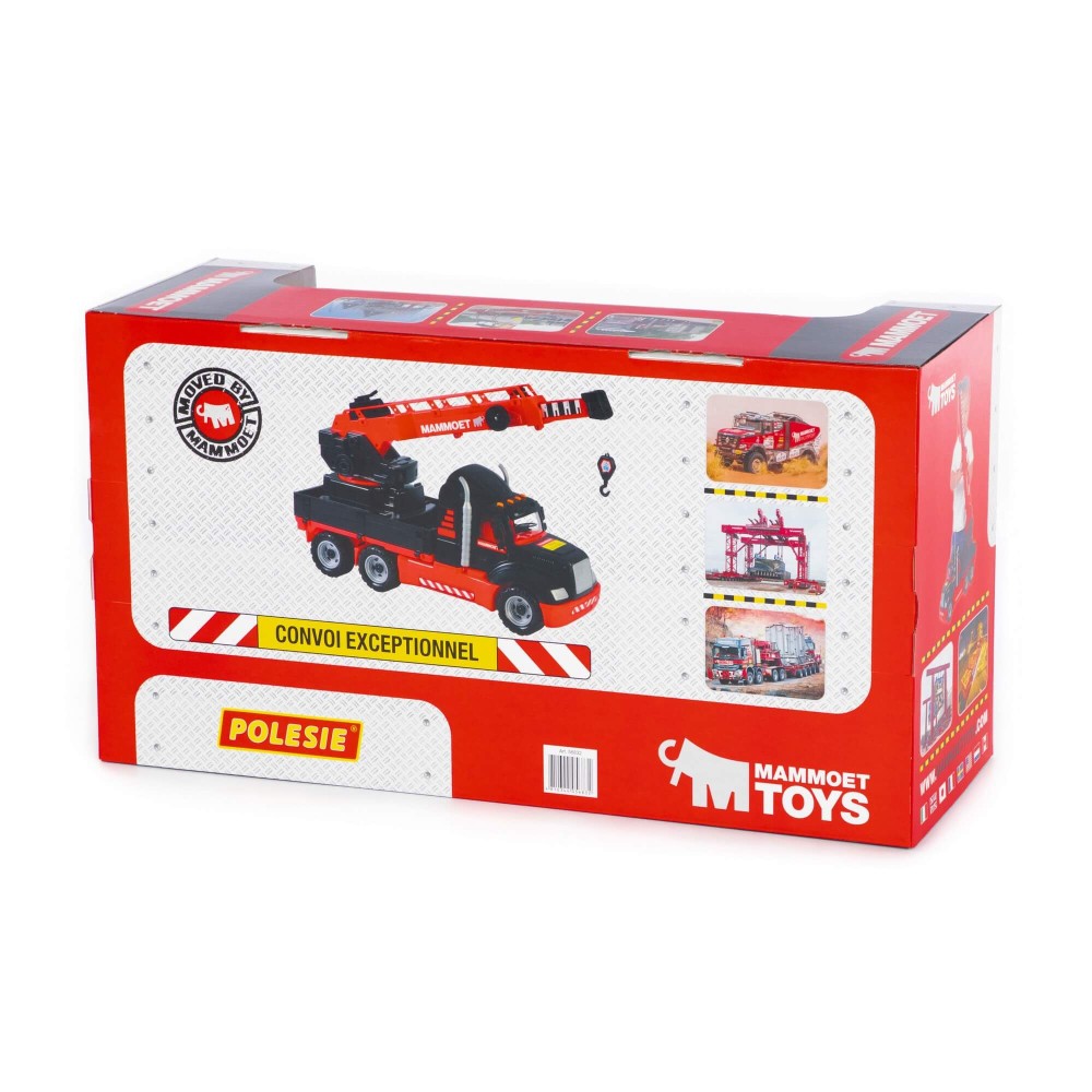 Крупнейшая в СНГ фабрика по производству игрушек «Полесье» совместно с компанией «МАММОЕТ», специализирующейся на тяжёлых подъёмных работах и транспортировке тяжёлых грузов по воде и суше, наладила выпуск лицензионной серии эксклюзивных игрушек. Дизайн игрушек разработан в соответствии с фирменными цветами и по подобию прототипов спецтехники, что делает игрушки более реалистичными. Серия предполагает наличие позиций для детей разных возрастов, с разными интересами. Автомобиль-кран уникален тем, что подъёмный механизм работает как у настоящего крана. Платформа крана поворачивается на 360°, стрела крана поднимается на 45° и выдвигается. Трос в виде верёвочки опускается с помощью лебёдки на 50 см. Кроме того, борта автомобиля можно открыть или снять. Автомобиль надёжный, имеет достойный внешний вид и относится к подарочной серии автомобилей.