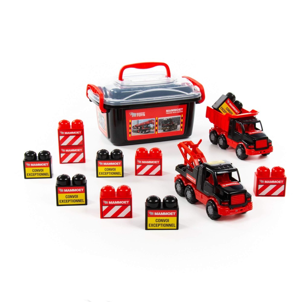 Крупнейшая в СНГ фабрика по производству игрушек «Полесье» совместно с компанией «МАММОЕТ», специализирующейся на тяжёлых подъёмных работах и транспортировке тяжёлых грузов по воде и суше, наладила выпуск лицензионной серии эксклюзивных игрушек. Дизайн игрушек разработан в соответствии с фирменными цветами компании «МАММОЕТ», что позволяет игрушке выглядеть более реалистично в глазах ребёнка. Серия предполагает наличие позиций для детей разных возрастов и с разными интересами. Она включает в себя каталки, конструкторские наборы, автомобили и многое другое. Автомобиль-самосвал имеет оптимальный размер для игры как дома, так и на улице. В кузове карьерного типа удобно возить песок, насыпать и ссыпать его в песочницу. Автомобиль-эвакуатор оснащён эвакуаторным краном, имеет яркую расцветку и реалистичный дизайн. Элементы конструктора (10 элем.) разнообразят игру и сделают ее еще интереснее.