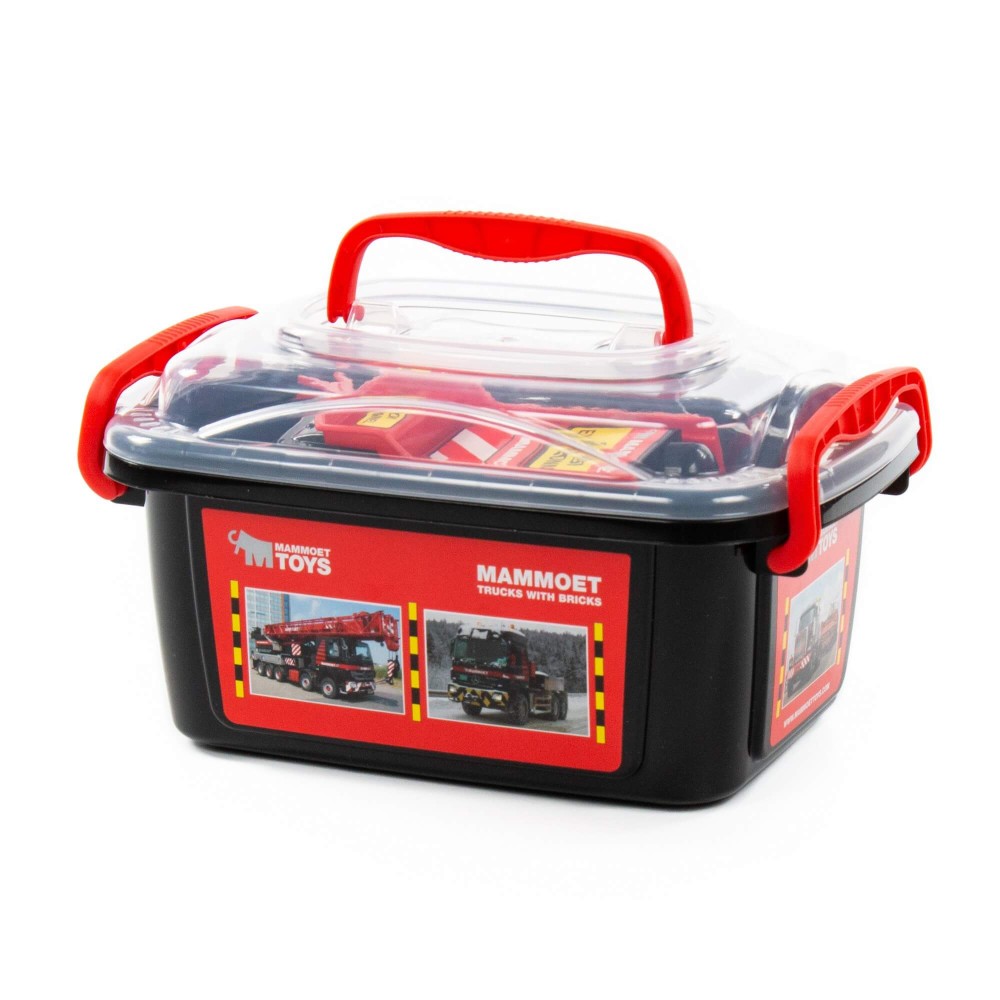 215-01 "MAMMOET", автомобиль-самосвал+автомобиль-эвакуатор+конструктор (10 элементов) (в контейнере)