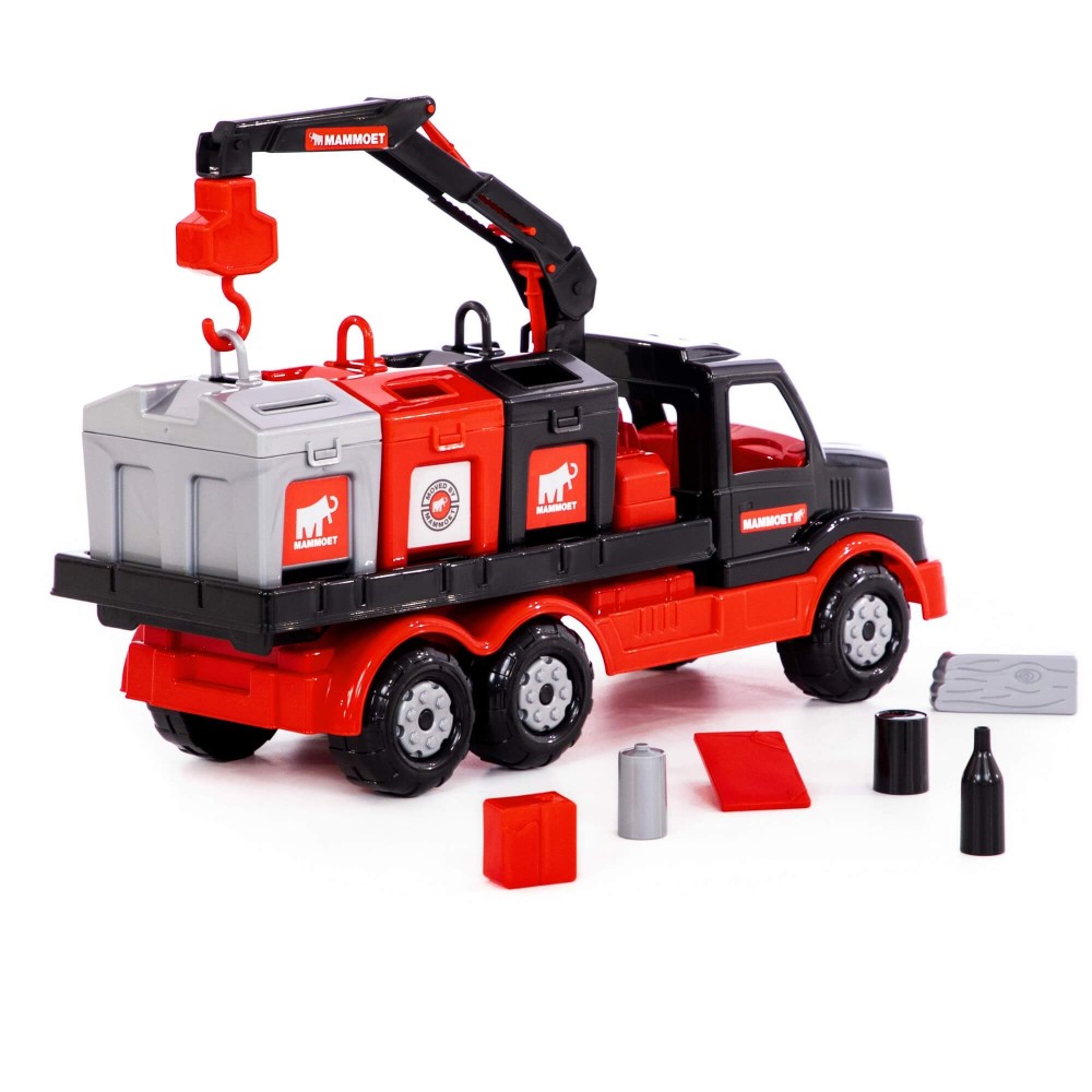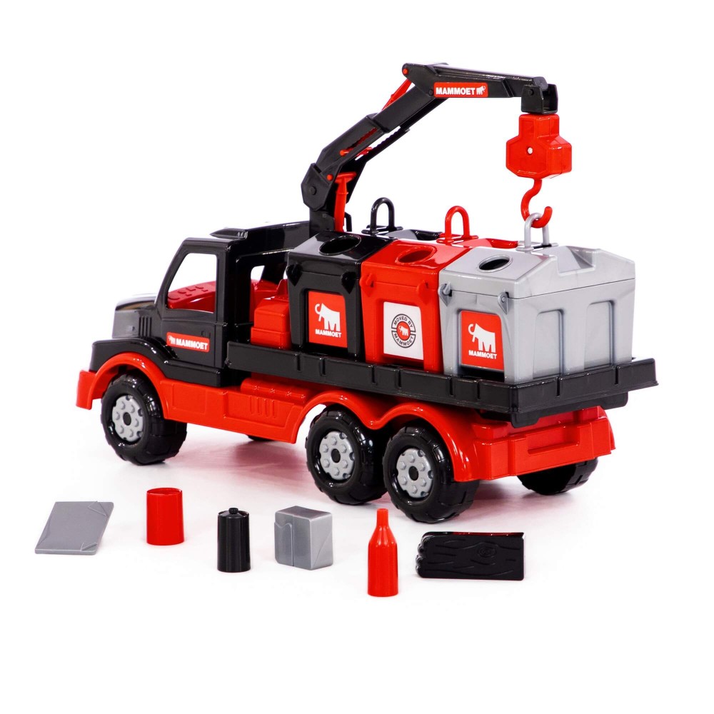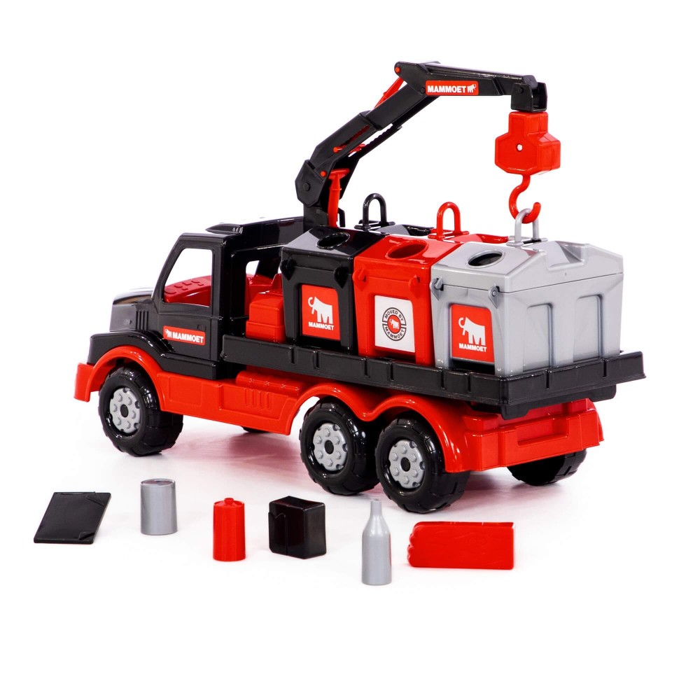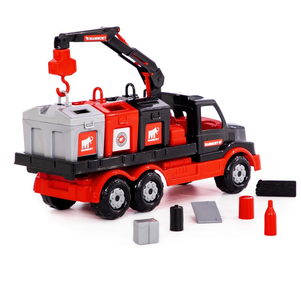 Крупнейшая в СНГ фабрика по производству игрушек «Полесье» совместно с компанией «МАММОЕТ», специализирующейся на тяжёлых подъёмных работах и транспортировке тяжёлых грузов по воде и суше, наладила выпуск лицензионной серии эксклюзивных игрушек. Дизайн игрушек разработан в соответствии с фирменными цветами и по подобию прототипов спецтехники, что делает игрушки более реалистичными. Серия предполагает наличие позиций для детей разных возрастов, с разными интересами. Автомобиль-контейнеровоз оснащён подъёмным механизмом, который работает по принципу крана. Платформа для контейнеров вмещает по три больших контейнера. Контейнеры выполняют функцию сортера — логической игрушки, к каждому из отверстий необходимо подобрать нужные фигурки. Игра с эксклюзивным автомобилем позволяет ребёнку больше узнать о спецтехнике, а также развивает логику, моторику рук, координацию движений, фантазию. Автомобиль надёжный, имеет достойный внешний вид и относится к подарочной серии игрушек.