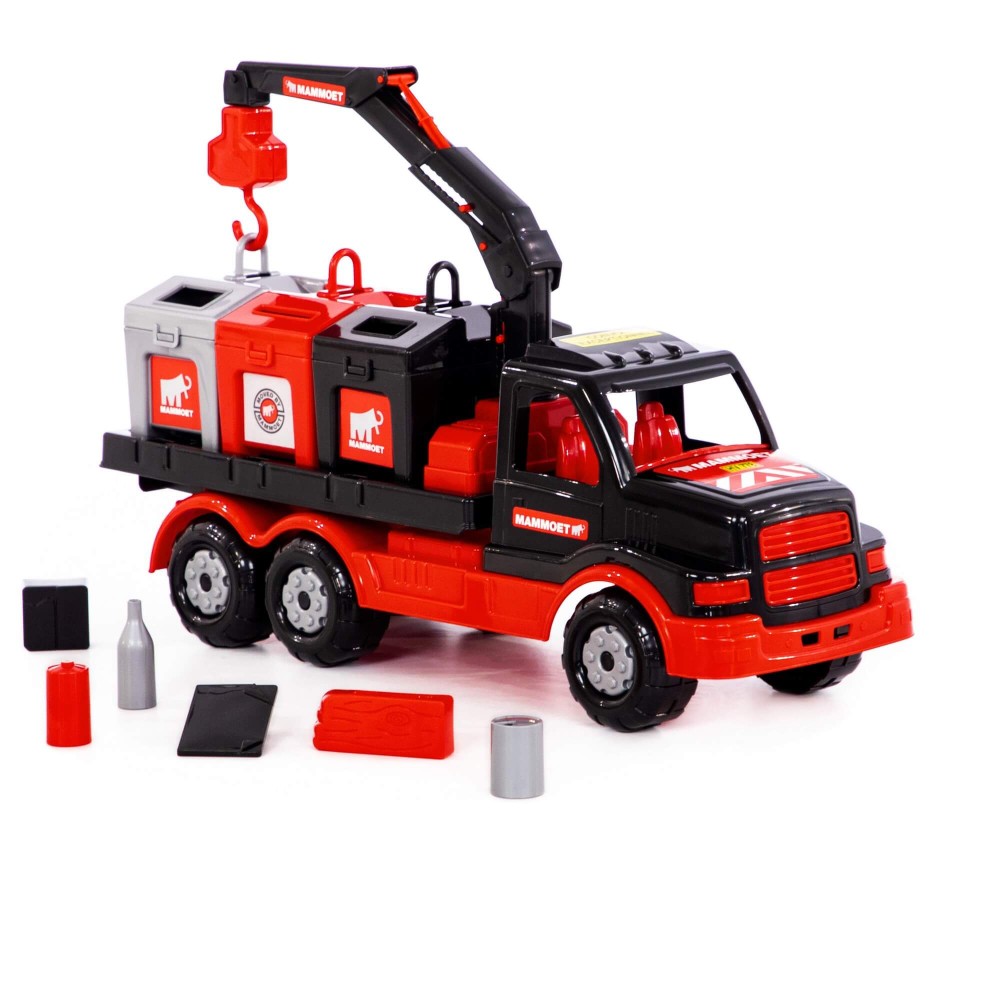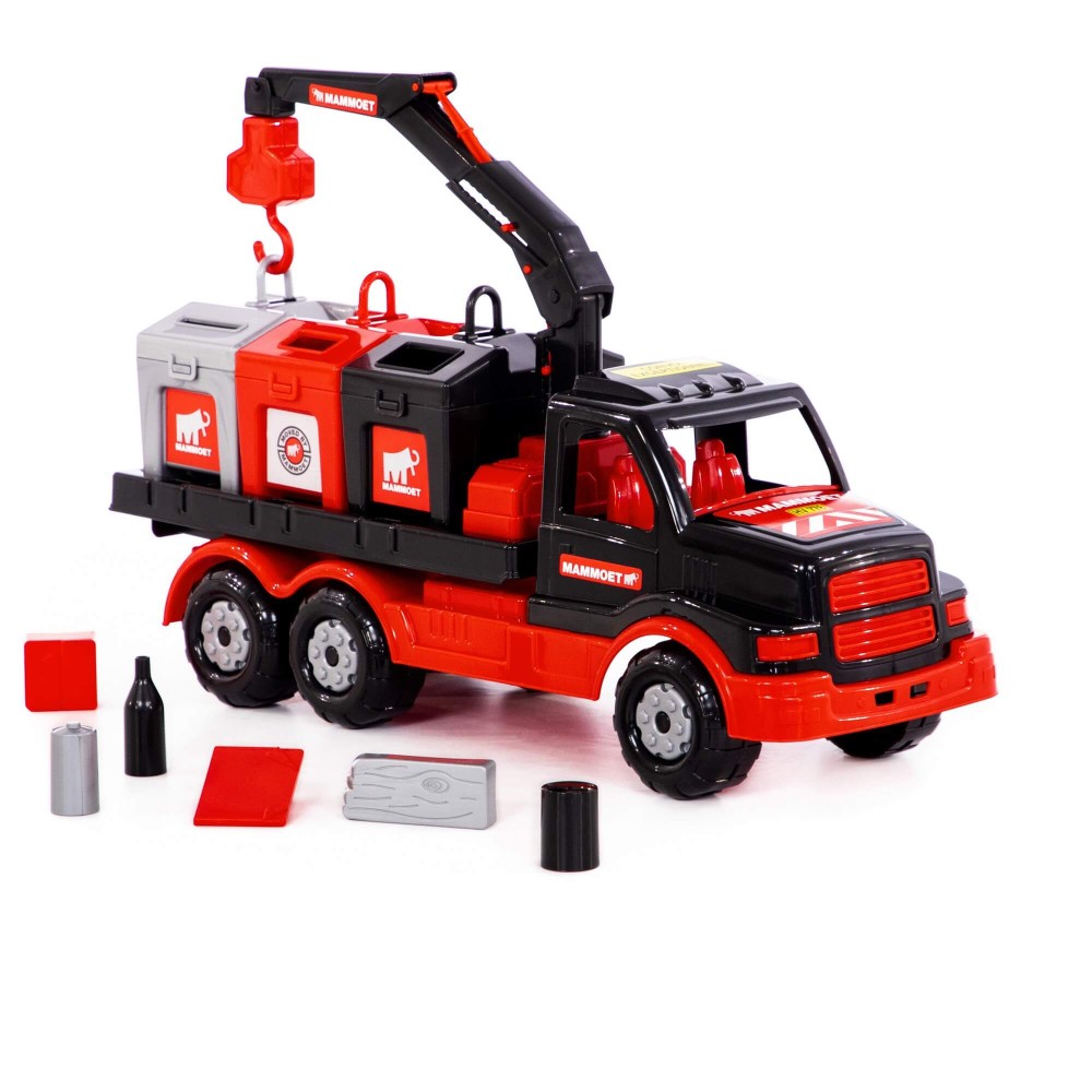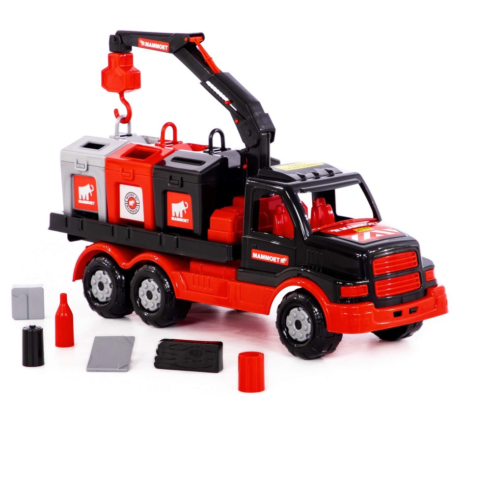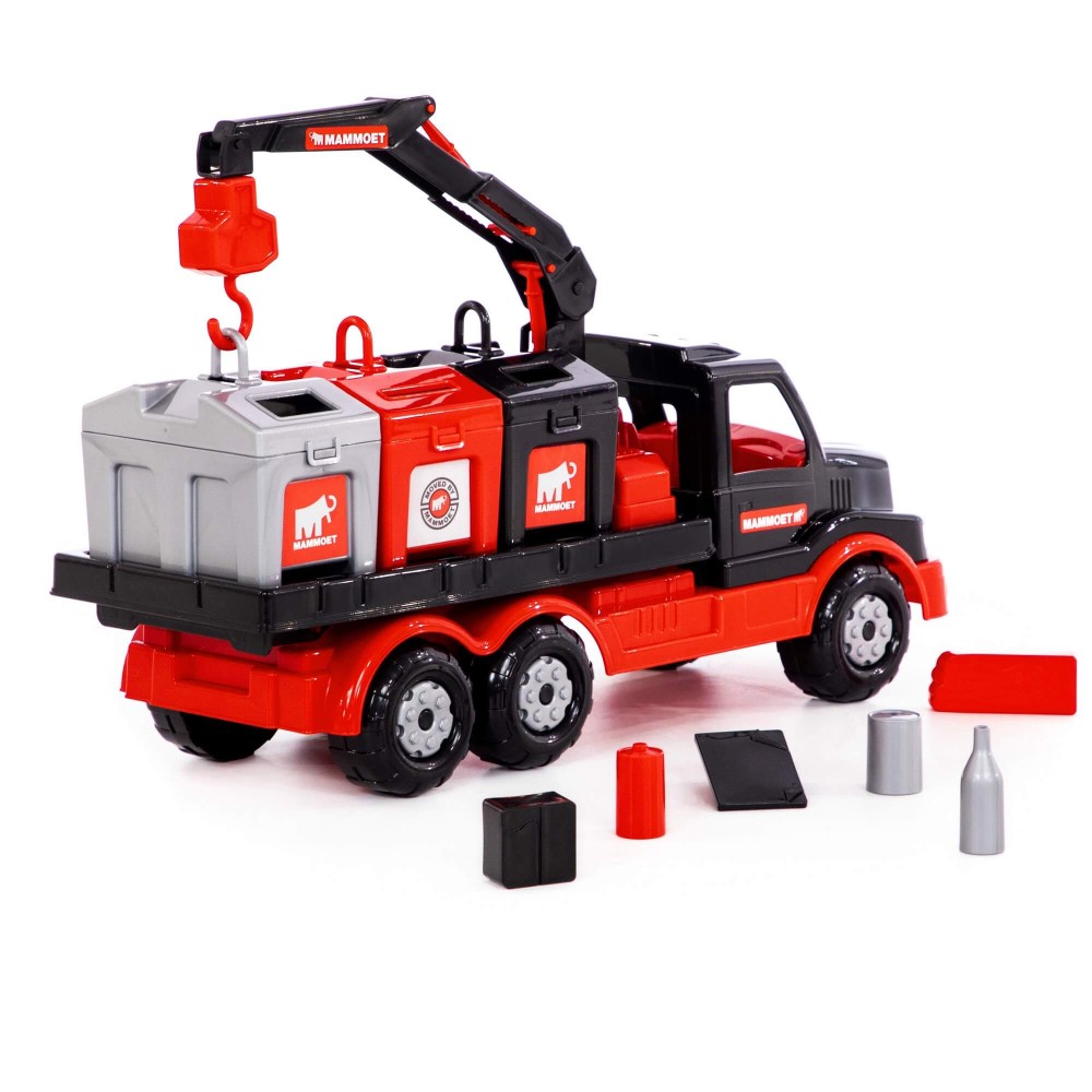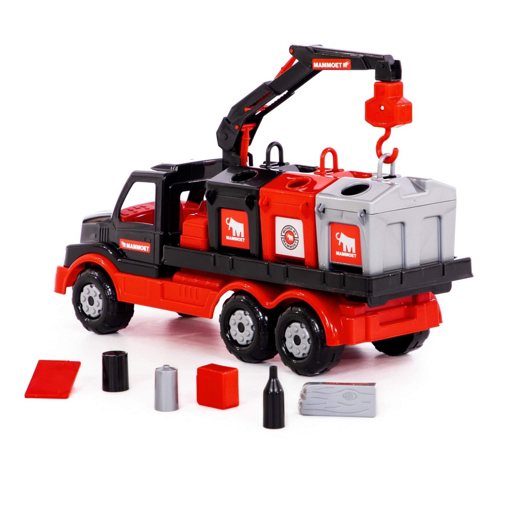 Крупнейшая в СНГ фабрика по производству игрушек «Полесье» совместно с компанией «МАММОЕТ», специализирующейся на тяжёлых подъёмных работах и транспортировке тяжёлых грузов по воде и суше, наладила выпуск лицензионной серии эксклюзивных игрушек. Дизайн игрушек разработан в соответствии с фирменными цветами и по подобию прототипов спецтехники, что делает игрушки более реалистичными. Серия предполагает наличие позиций для детей разных возрастов, с разными интересами. Автомобиль-контейнеровоз оснащён подъёмным механизмом, который работает по принципу крана. Платформа для контейнеров вмещает по три больших контейнера. Контейнеры выполняют функцию сортера — логической игрушки, к каждому из отверстий необходимо подобрать нужные фигурки. Игра с эксклюзивным автомобилем позволяет ребёнку больше узнать о спецтехнике, а также развивает логику, моторику рук, координацию движений, фантазию. Автомобиль надёжный, имеет достойный внешний вид и относится к подарочной серии игрушек.
