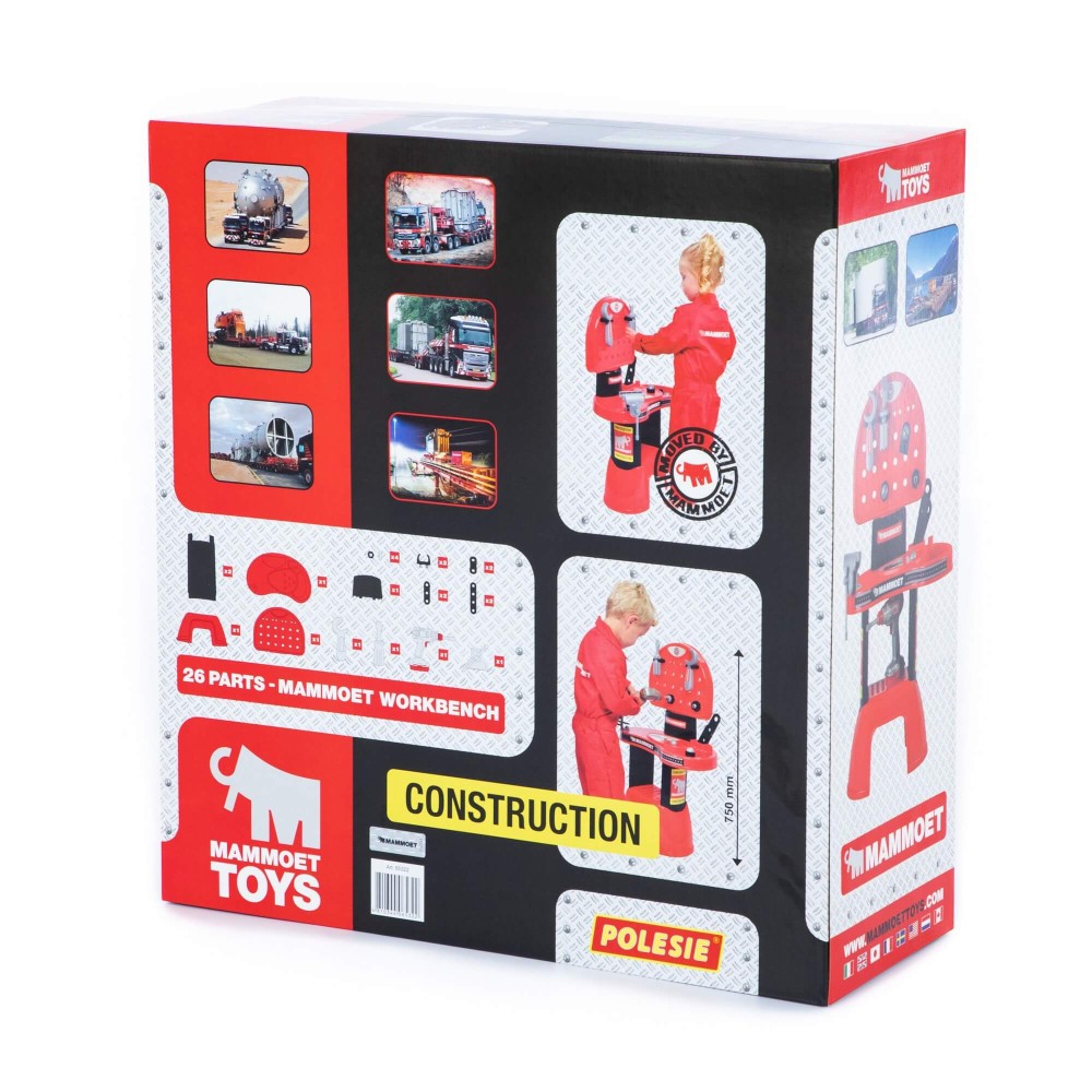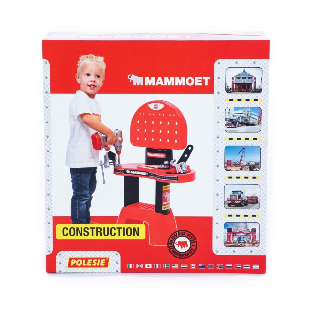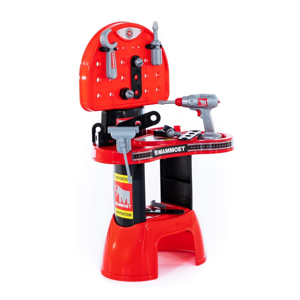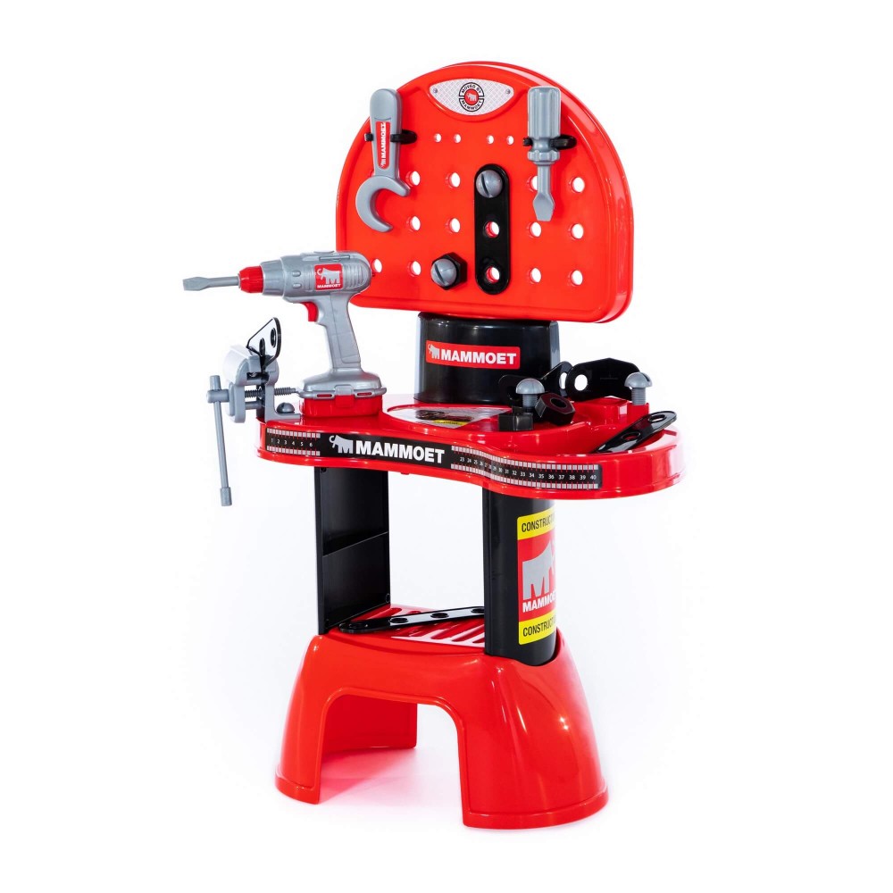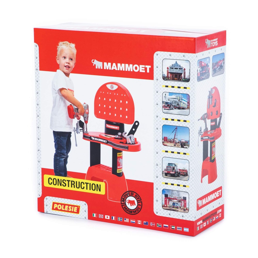 Комплекс «Мастерская МАММОЕТ» представляет собой рабочий стол (верстак) с полочкой для деталей, навесными держателями инструментов, перфорированной столешницей. Особенность набора — электронный шуруповерт. С его помощью ребёнок может откручивать и прикручивать к столешнице винты, присоединять пластины. Кроме того, мальчик познакомится с такими инструментами как отвёртка, гаечный ключ, тиски. В набор входят винты, гайки, соединительные пластины и уголки. С помощью набора мальчик приобретёт первые навыки работы с инструментом. Игровой комплекс развивает творческие способности, логическое мышление и умение конструировать.