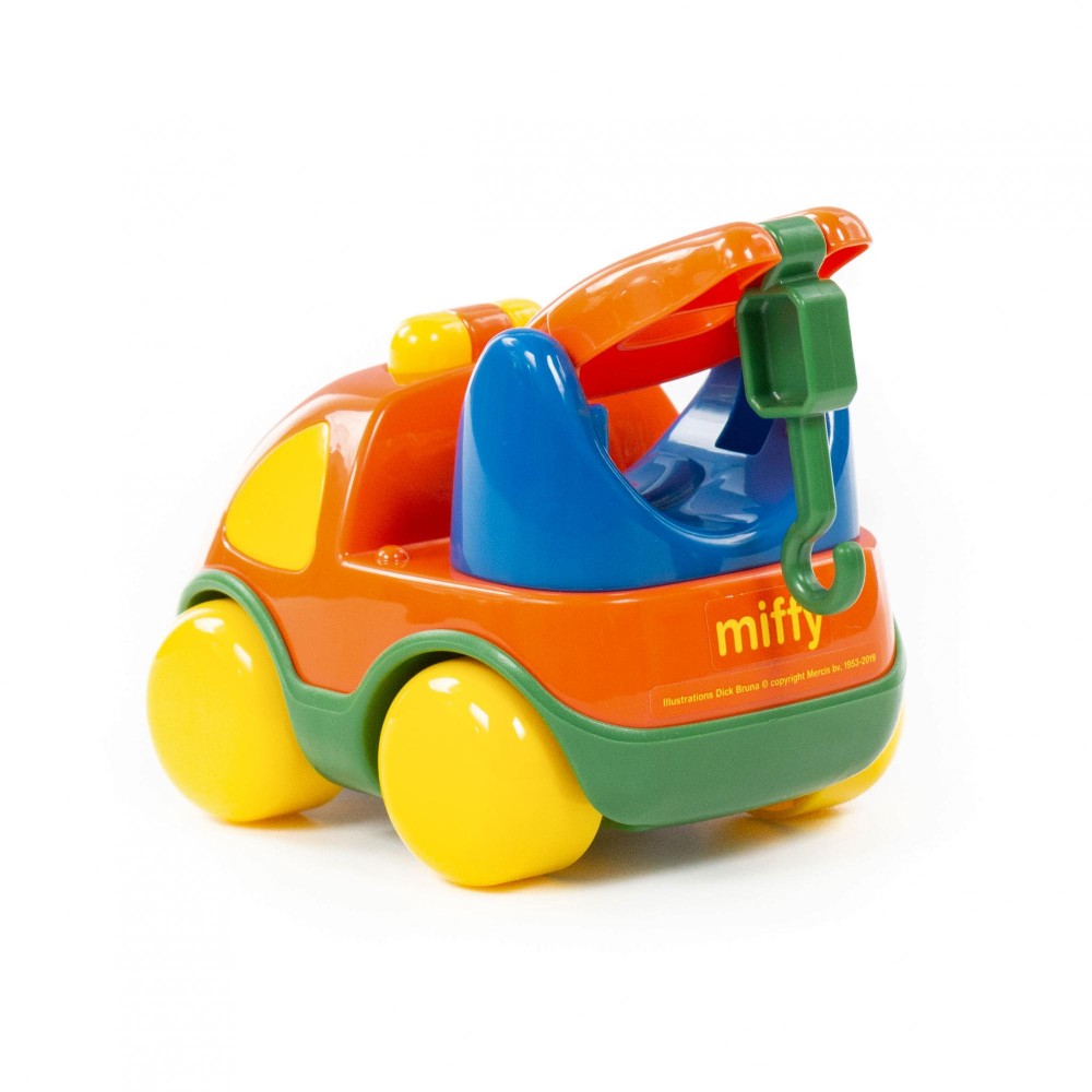 Фабрика по производству пластмассовых игрушек «Полесье» выпускает продукцию по лицензии «Миффи». Наклейки с изображением маленькой девочки-кролика украшают игрушки всей серии. Забавный автомобиль-эвакуатор «Миффи» подойдёт самым маленьким деткам. Машинка оснащена миниатюрным краном для подъёма автомобилей. Игрушка позволит малышу развить ловкость, координацию движений, умение осуществлять пространственные перемещения. Машинка безопасна (имеет округлые формы) и способствует развитию цветовосприятия у детей!