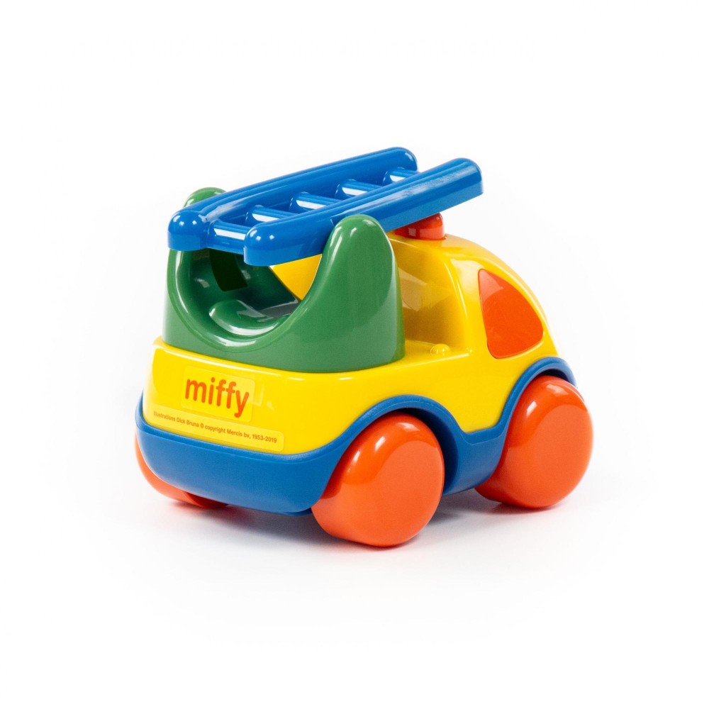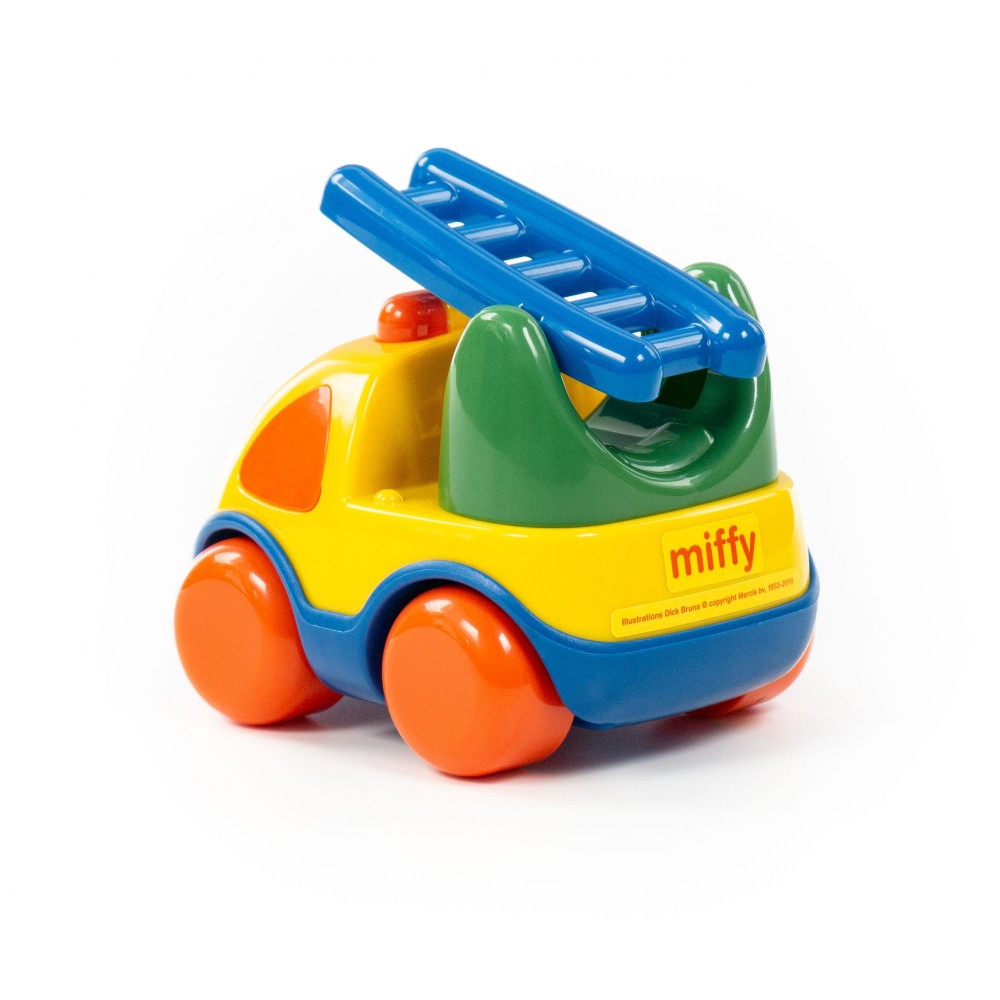 Фабрика по производству пластмассовых игрушек «Полесье» выпускает продукцию по лицензии «Миффи». Наклейки с изображением маленькой девочки-кролика украшают игрушки всей серии. Забавный автомобиль-пожарная спецмашина «Миффи» подойдёт самым маленьким деткам. Машинка оснащена подъёмной миниатюрной лестницей. Игрушка позволит малышу развить ловкость, координацию движений, умение осуществлять пространственные перемещения. Машинка безопасна (имеет округлые формы) и способствует развитию цветовосприятия у детей!