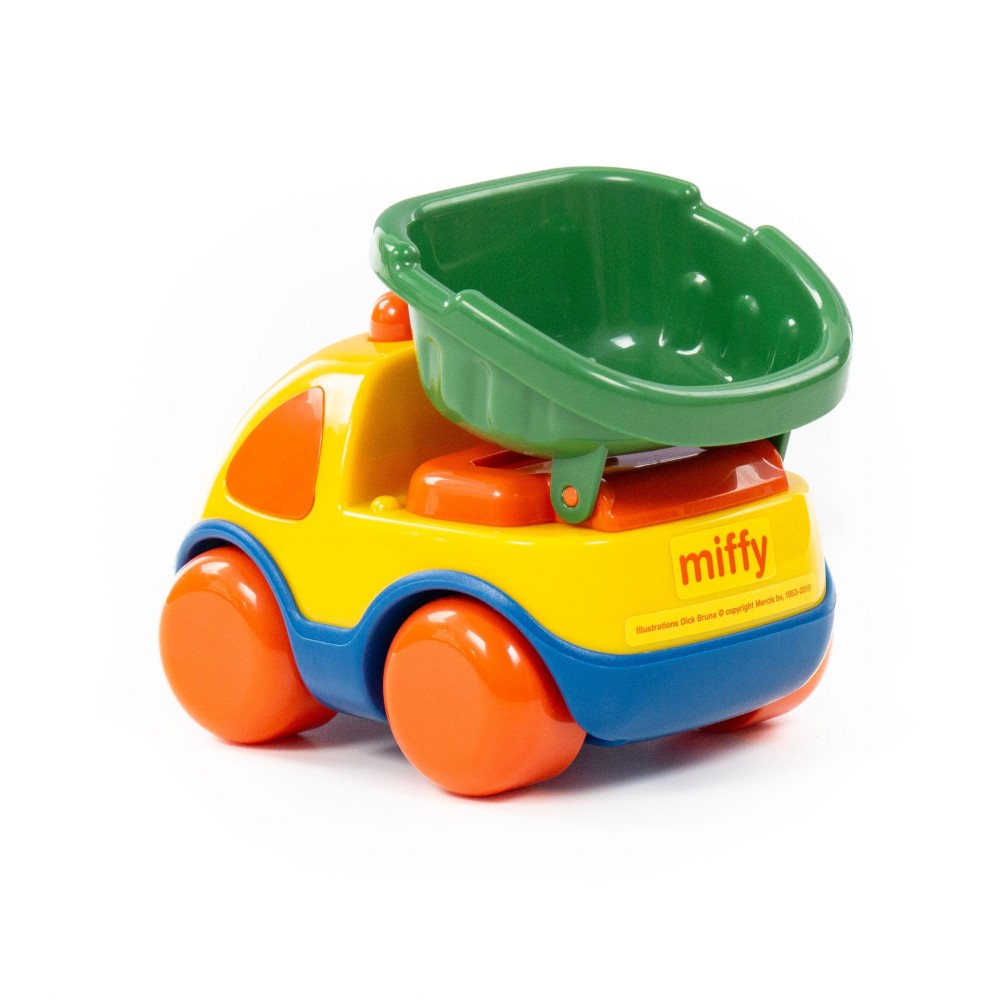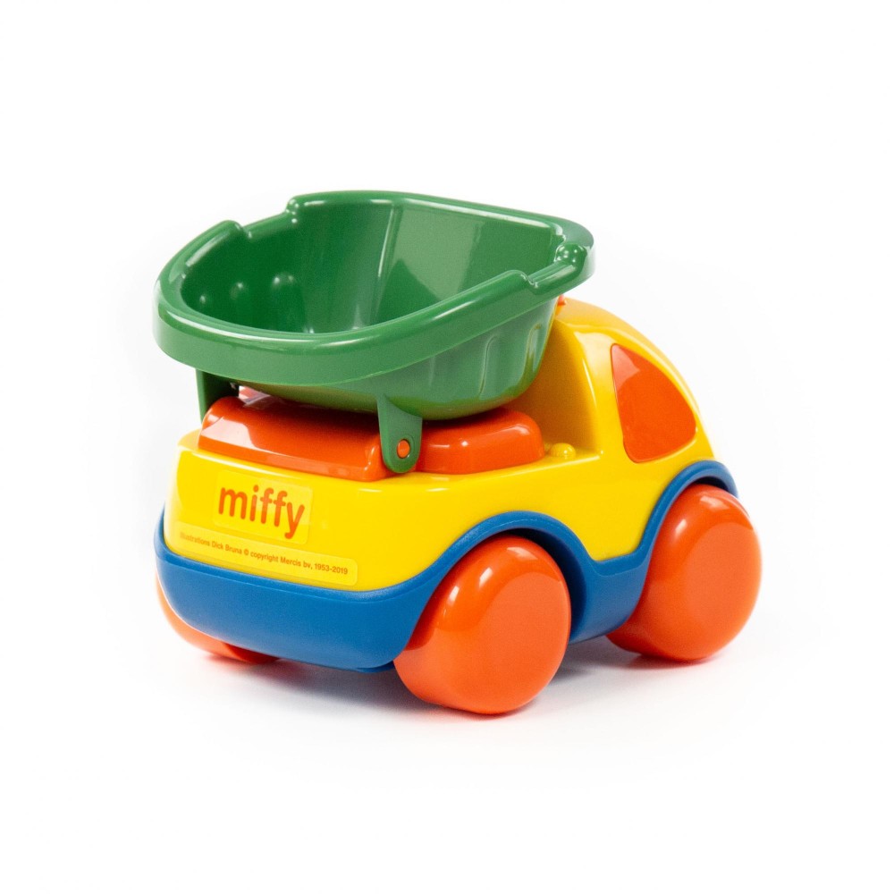 Фабрика по производству пластмассовых игрушек «Полесье» выпускает продукцию по лицензии «Миффи». Наклейки с изображением маленькой девочки-кролика украшают игрушки всей серии. Забавный автомобиль-самосвал «Миффи» подойдёт самым маленьким деткам. Кузов откидывается назад. Игрушка позволит малышу развить ловкость, координацию движений, умение осуществлять пространственные перемещения. Машинка безопасна (имеет округлые формы) и способствует развитию цветовосприятия у детей!