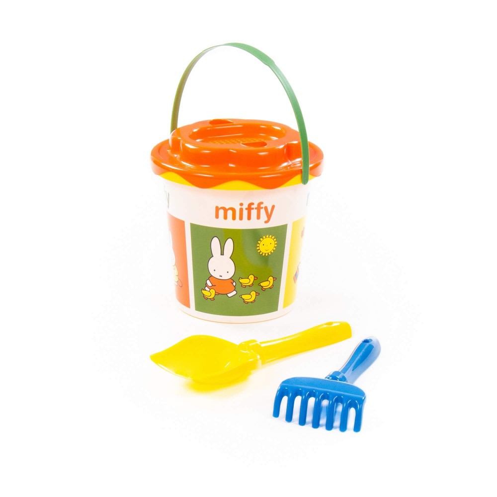 Компания «Полесье» разработала серию игрушек «Миффи». Маленькая девочка-кролик украшает летние наборы. Все элементы выполнены в цветах известного на весь мир мультфильма про Миффи, история которого началась в Голландии. Летний комплект данной серии разнообразит игру малыша в песочнице или на пляже. Наклейка нанесена современным способом — по технологии IML. Благодаря этому рисунок на игрушке не стирается длительное время и не боится воды. В набор входят: ведро с наклейкой, ситечко «Солнышко», лопатка, грабельки.