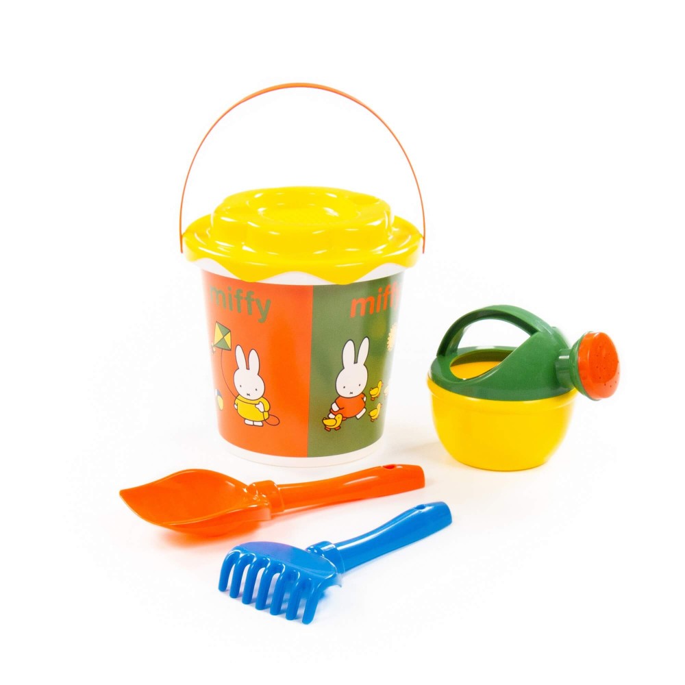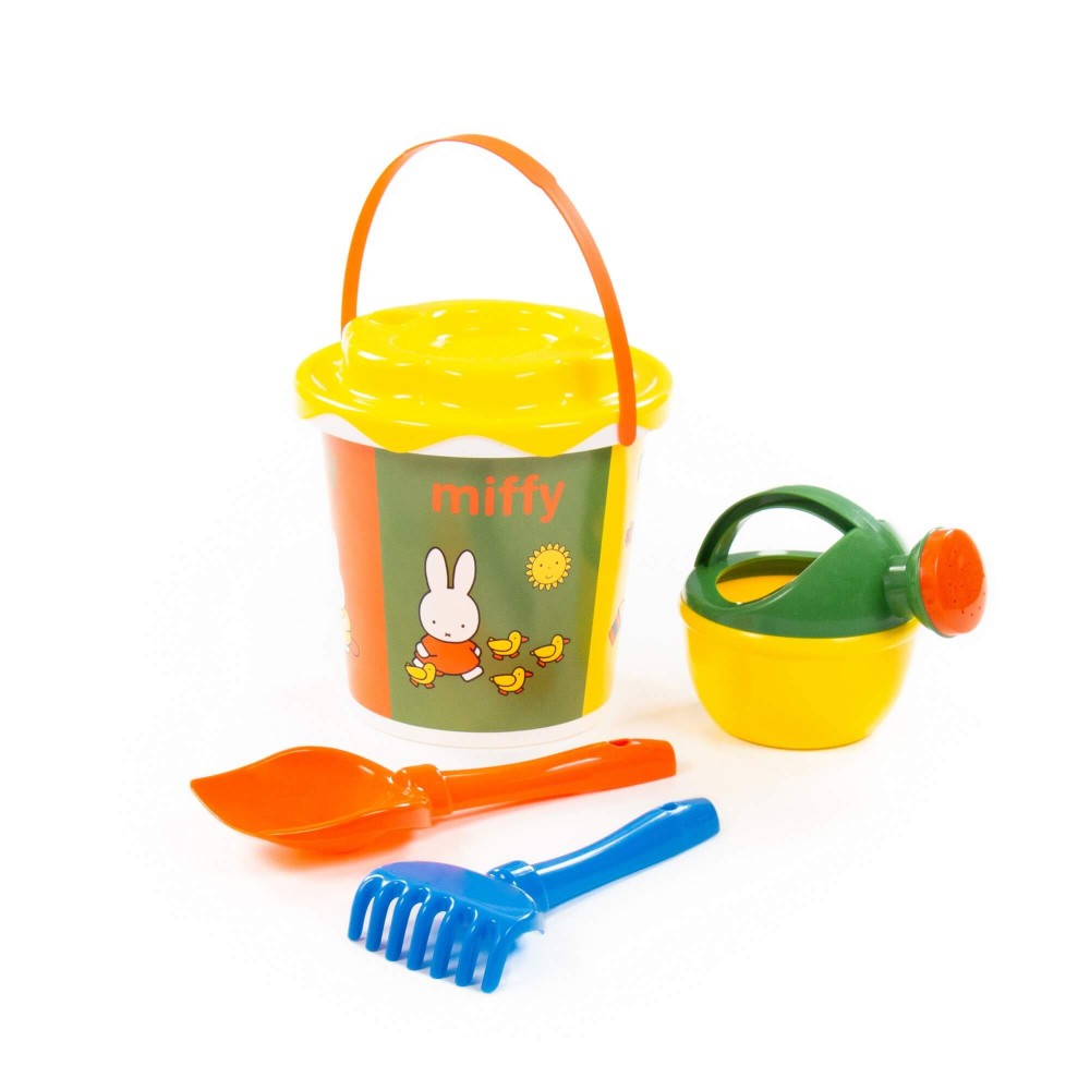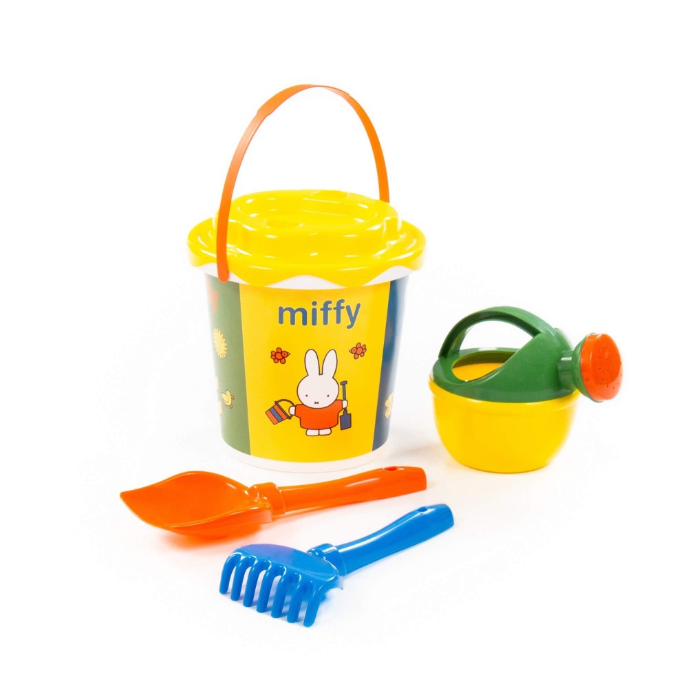 Компания «Полесье» разработала серию игрушек «Миффи». Маленькая девочка-кролик украшает летние наборы. Все элементы выполнены в цветах известного на весь мир мультфильма про Миффи, история которого началась в Голландии. Летний комплект данной серии разнообразит игру малыша в песочнице или на пляже. Наклейка нанесена современным способом — по технологии IML. Благодаря этому рисунок на игрушке не стирается длительное время и не боится воды. В набор входят: ведро с наклейкой, ситечко «Солнышко», лопатка, грабельки и лейка малая.