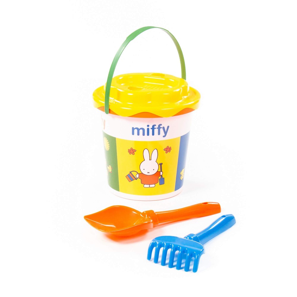 Компания «Полесье» разработала серию игрушек «Миффи». Маленькая девочка-кролик украшает летние наборы. Все элементы выполнены в цветах известного на весь мир мультфильма про Миффи, история которого началась в Голландии. Летний комплект данной серии разнообразит игру малыша в песочнице или на пляже. Наклейка нанесена современным способом — по технологии IML. Благодаря этому рисунок на игрушке не стирается длительное время и не боится воды. В набор входят: ведро с наклейкой, ситечко «Солнышко», лопатка, грабельки.