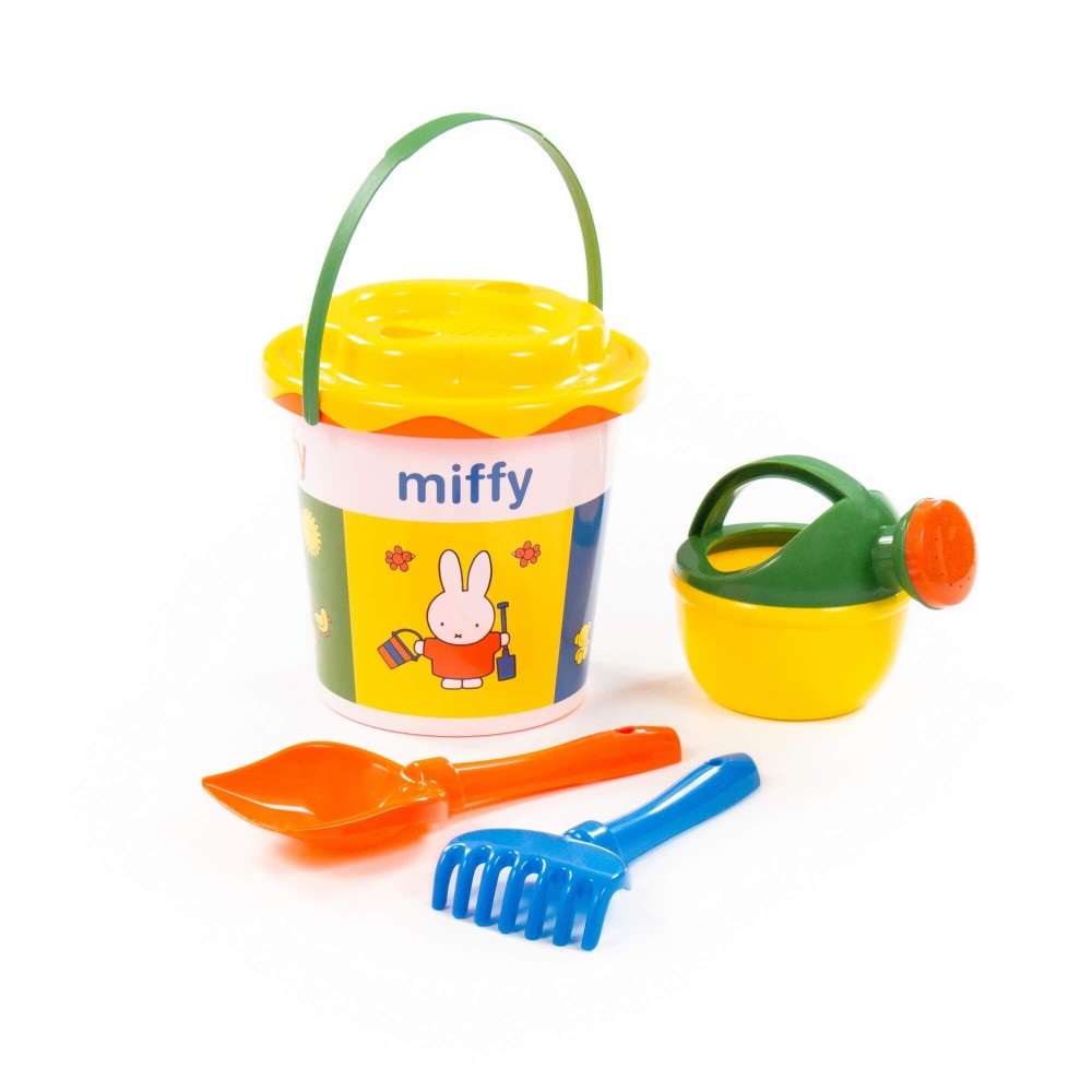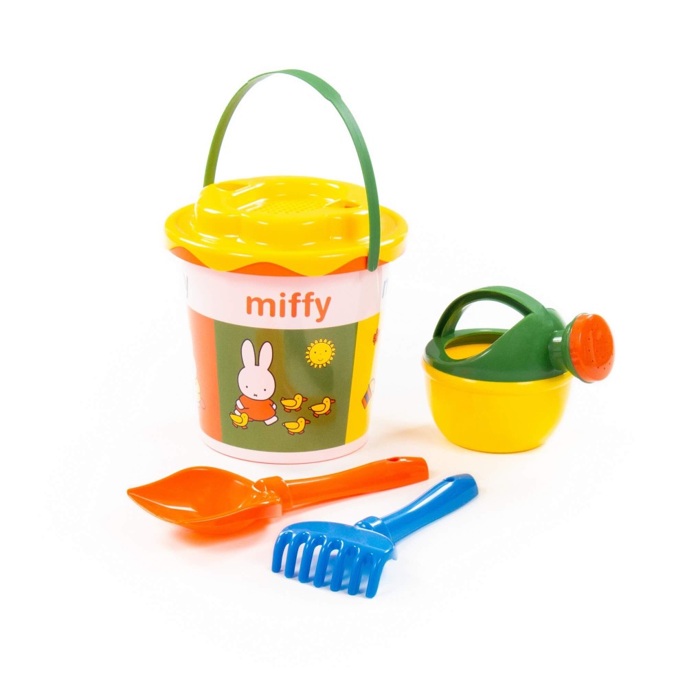Компания «Полесье» разработала серию игрушек «Миффи». Маленькая девочка-кролик украшает летние наборы. Все элементы выполнены в цветах известного на весь мир мультфильма про Миффи, история которого началась в Голландии. Летний комплект данной серии разнообразит игру малыша в песочнице или на пляже. Наклейка нанесена современным способом — по технологии IML. Благодаря этому рисунок на игрушке не стирается длительное время и не боится воды. В набор входят: ведро с наклейкой, ситечко «Солнышко», лопатка, грабельки и лейка малая.