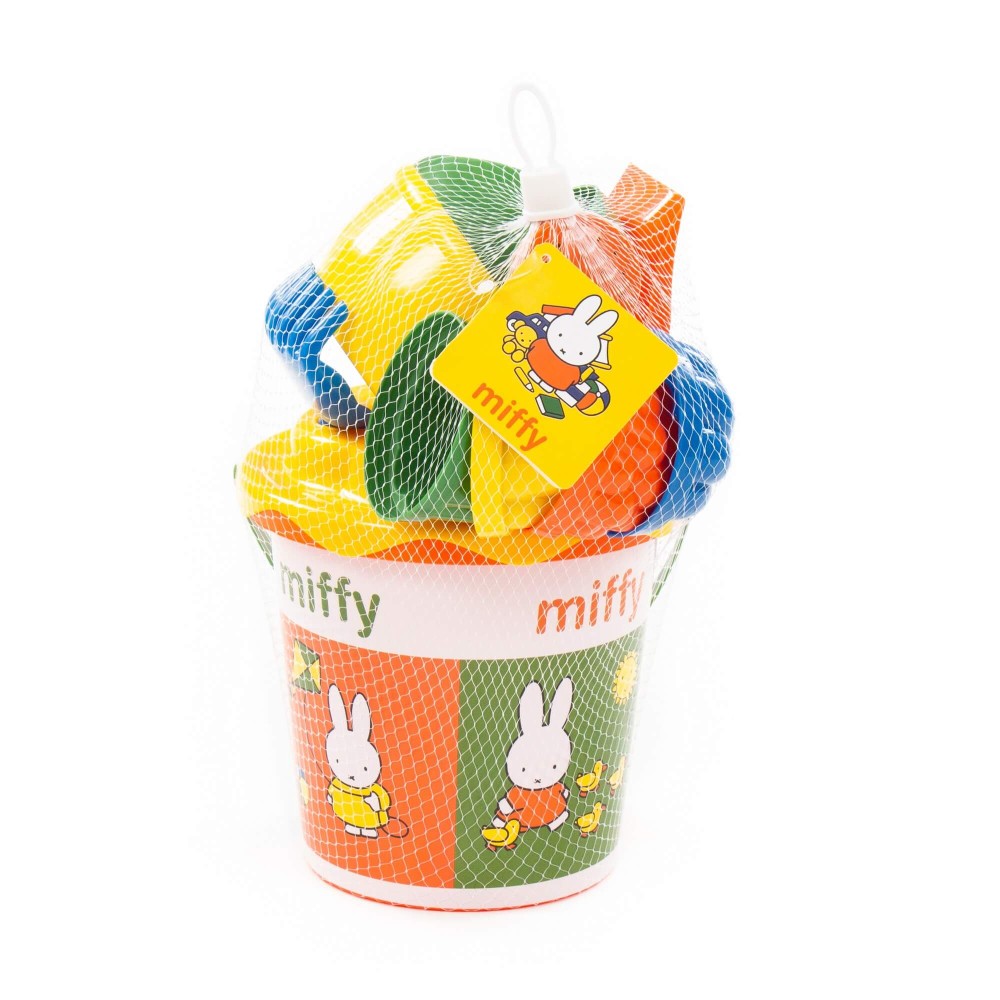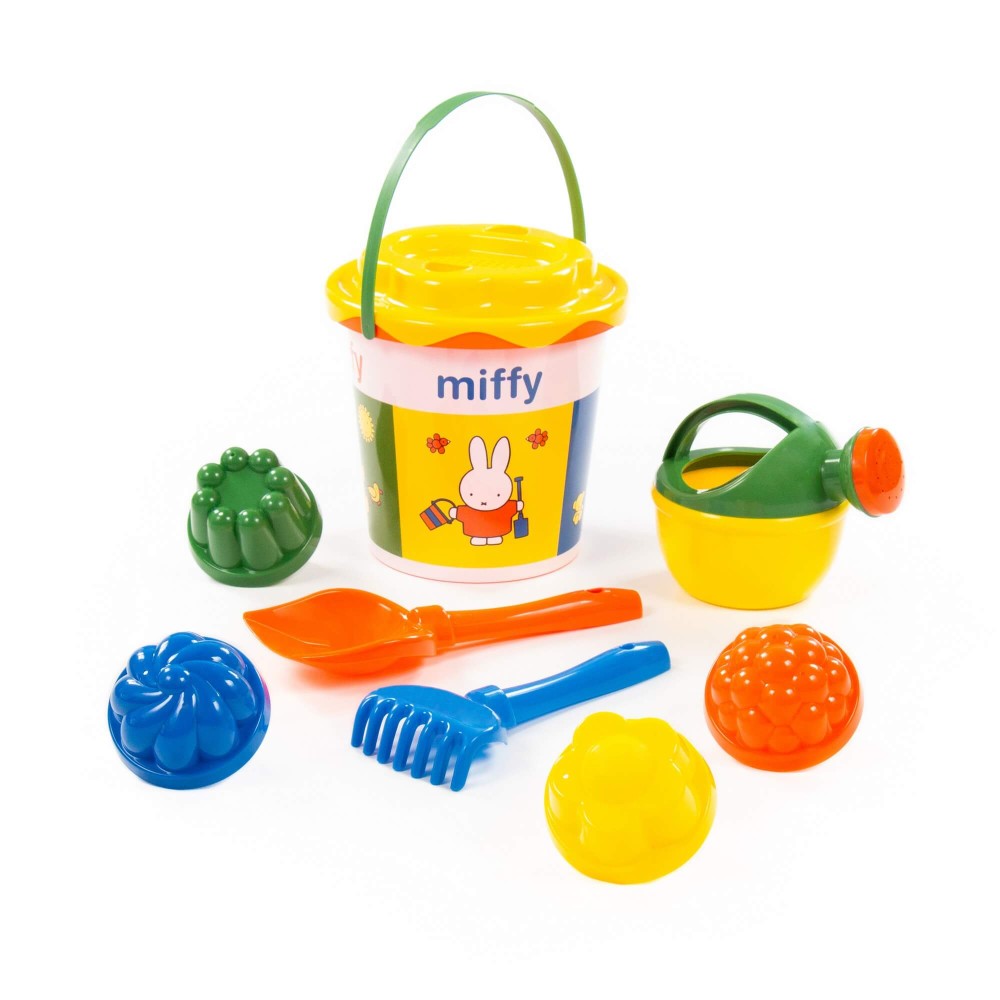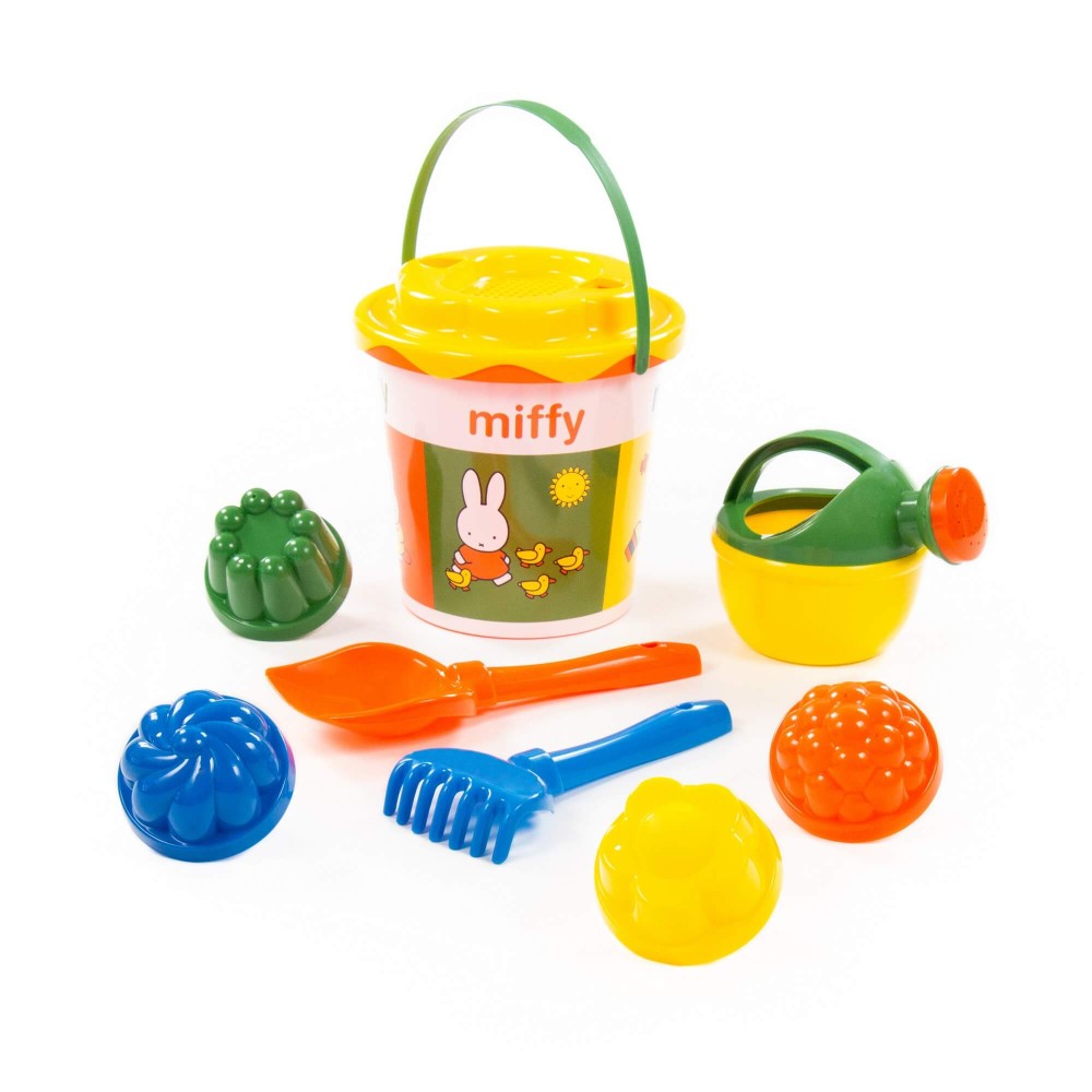 Компания «Полесье» разработала серию игрушек «Миффи». Маленькая девочка-кролик украшает летние наборы. Все элементы выполнены в цветах известного на весь мир мультфильма про Миффи, история которого началась в Голландии. Летний комплект данной серии разнообразит игру малыша в песочнице или на пляже. Наклейка нанесена современным способом — по технологии IML. Благодаря этому рисунок на игрушке не стирается длительное время и не боится воды. В набор входят: ведро с наклейкой, ситечко «Солнышко», лопатка, грабельки, лейка малая и формочки (4 шт.).